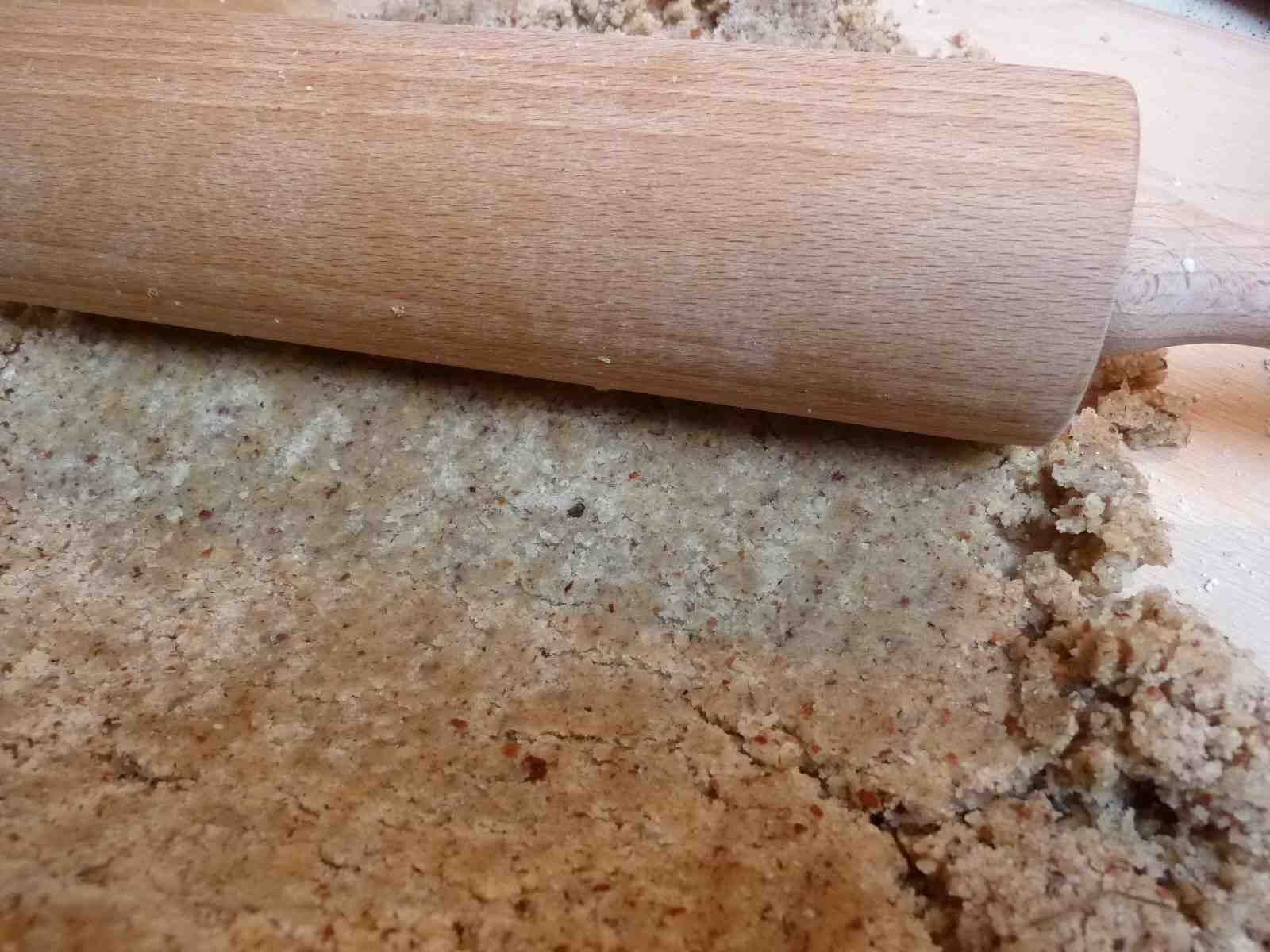 I rolled out the hazelnut marzipan, dusting the work space with with powdered sugar.