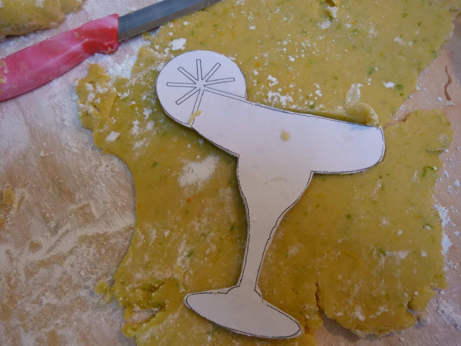 A small tip – if you roll the cookies and cut out shapes, for the chocolate cookie recipe, use cocoa powder instead of flour for your board and rolling pin and powdered sugar for the margarita cookies.