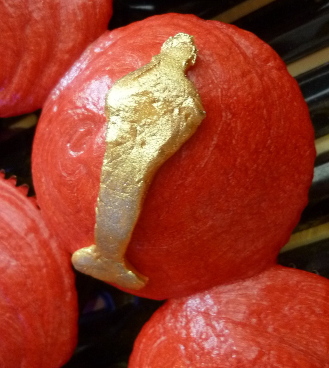 I then painted the Oscar shapes with gold metallic food powder and stuck them on the tops of the cupcakes.