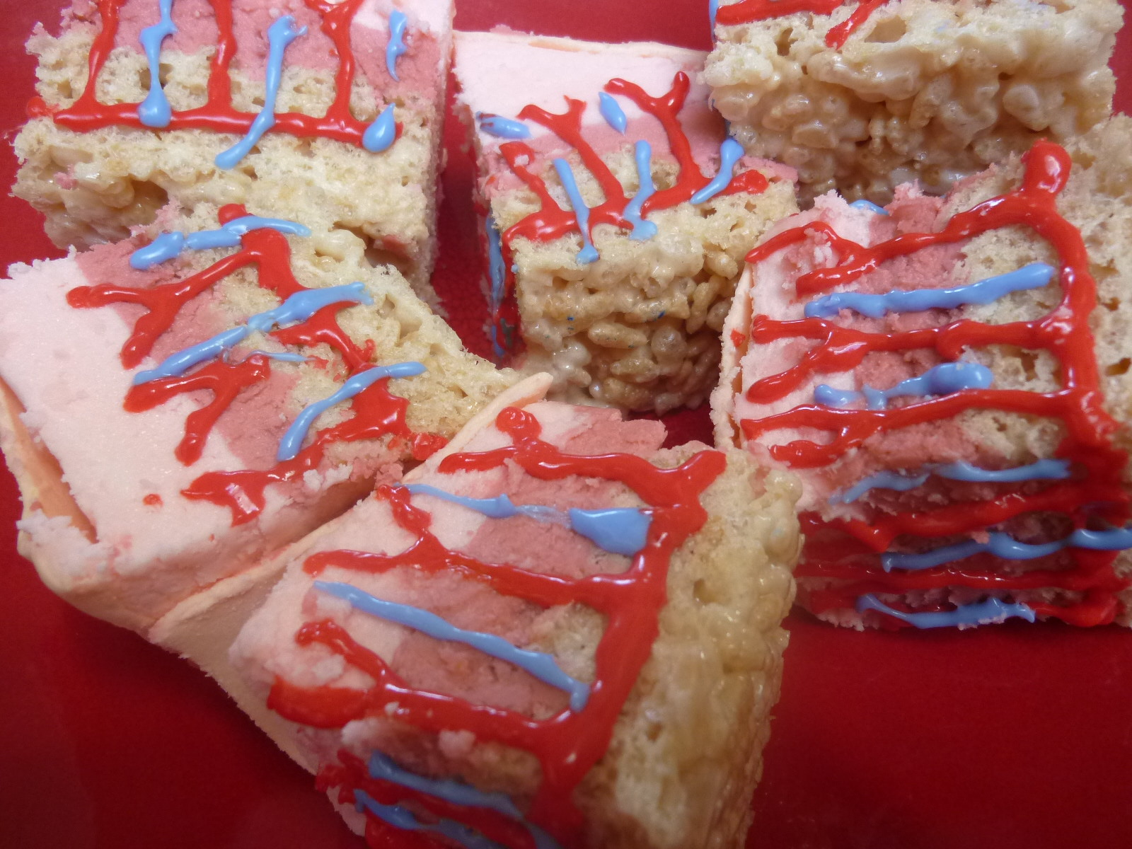 Using one color, then the other, I painted squiggles on the sides of the treats to represent the veins and vessels.