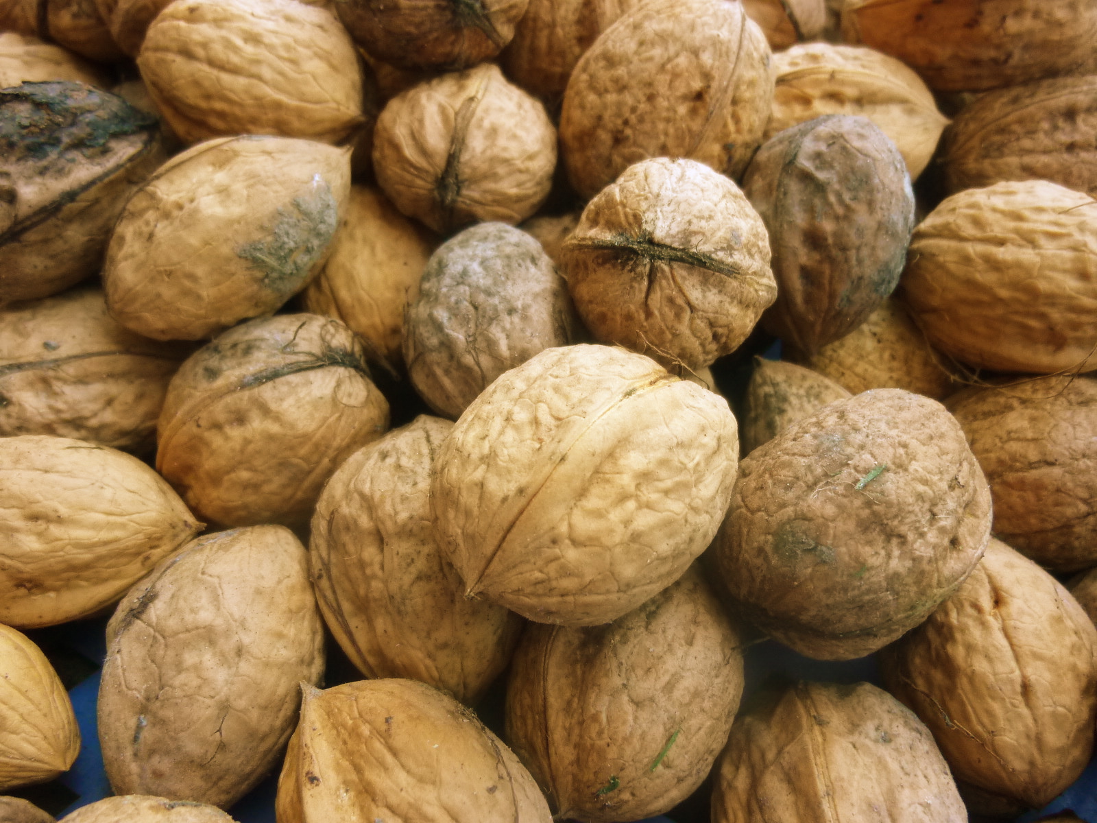 We were nuts at home. Literally. The two walnut trees in our garden were shedding nuts faster than we could gather them up.  Even faster than the squirrels could scurry away with them. There was no avoiding baking with them.