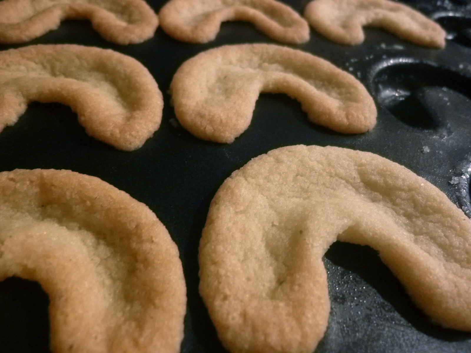 • Place pieces on baking sheet curving them into a kipferl shape.