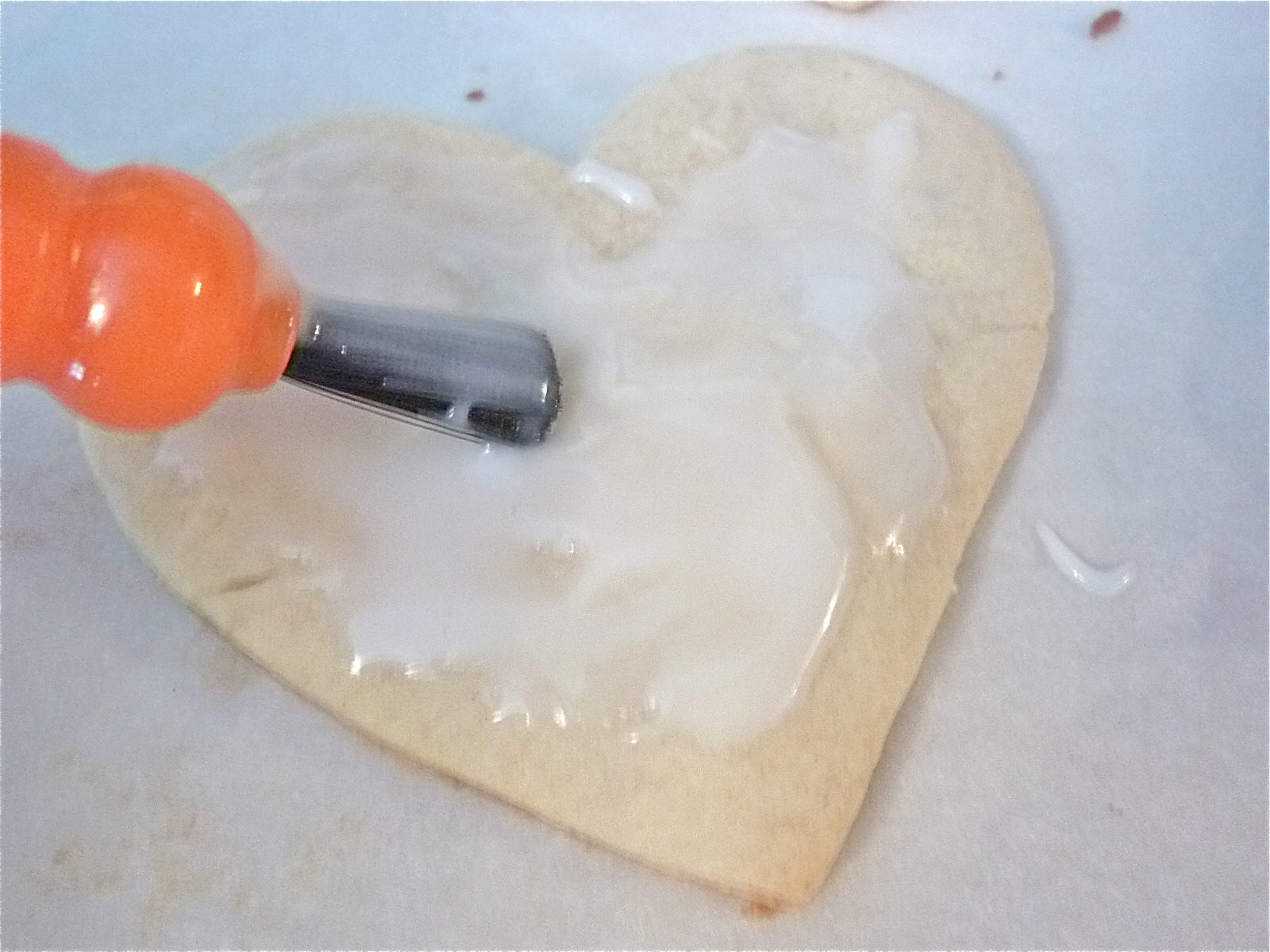 - With a clean paintbrush apply a thin layer of the icing glue to the cookie.