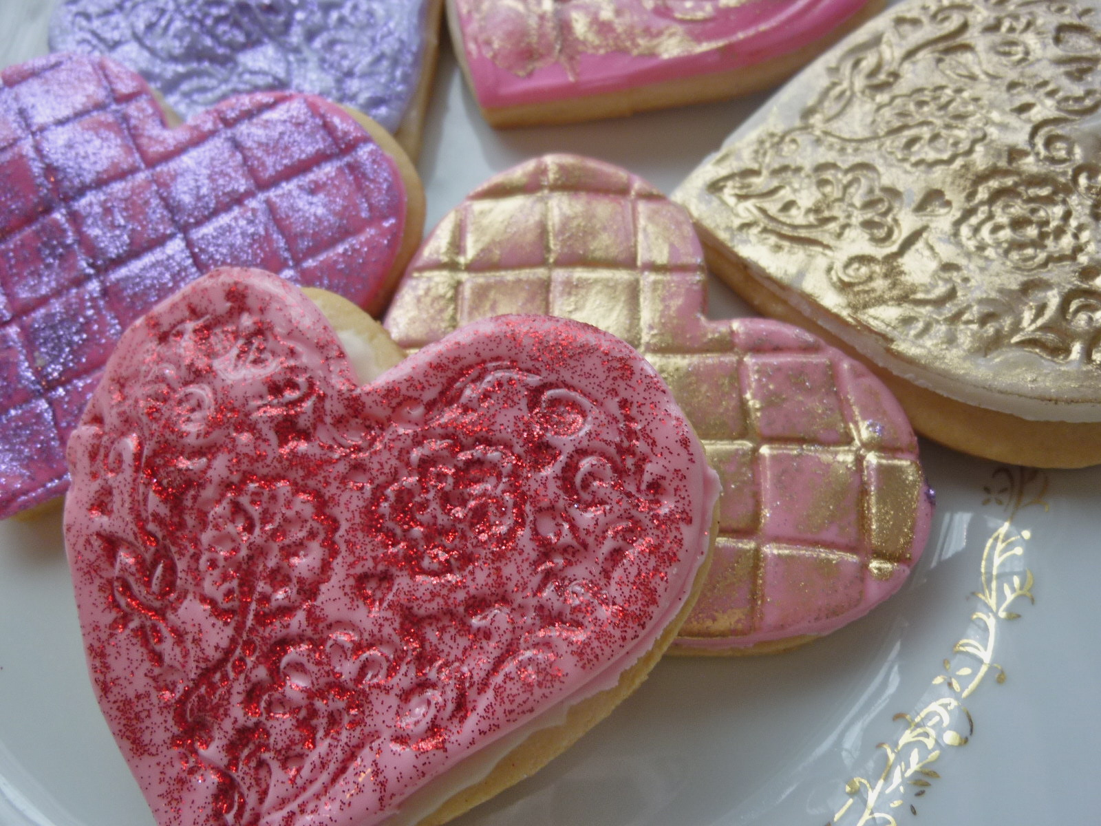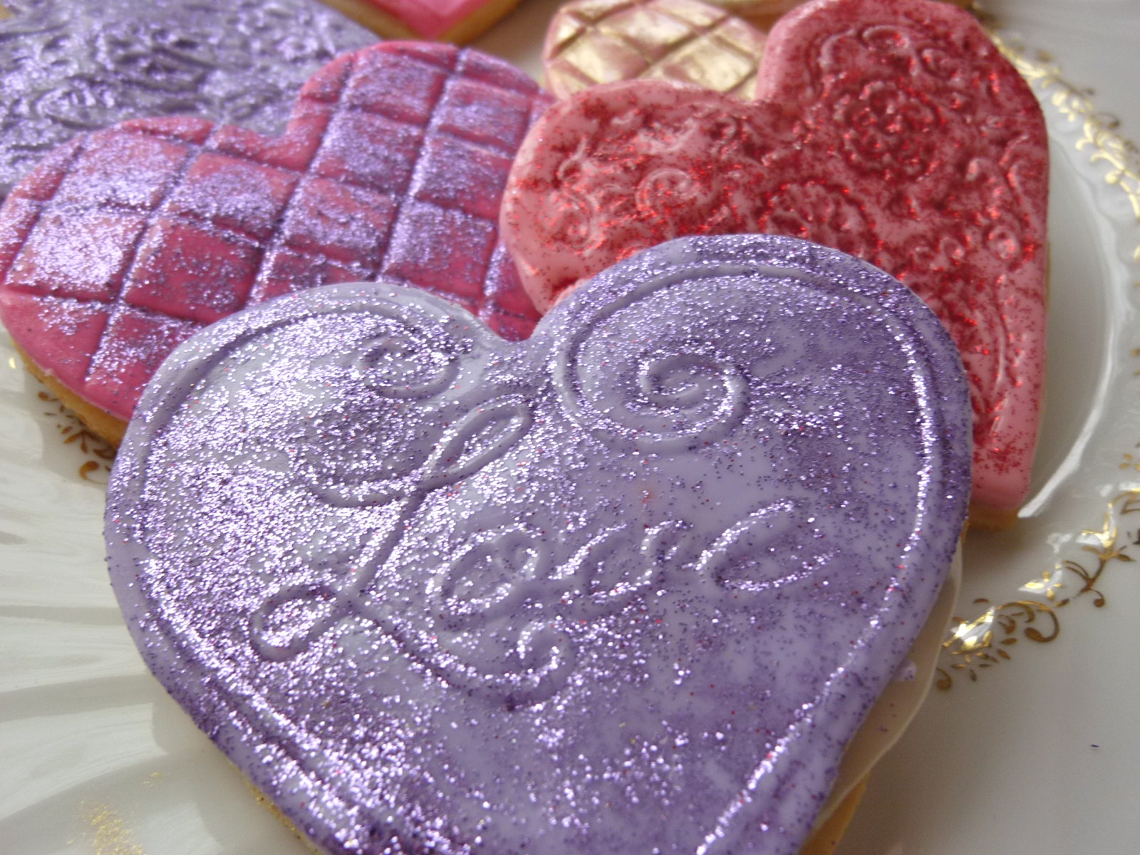 With the icing acting as a glue I placed the fondant heart cutouts on the cookies.
