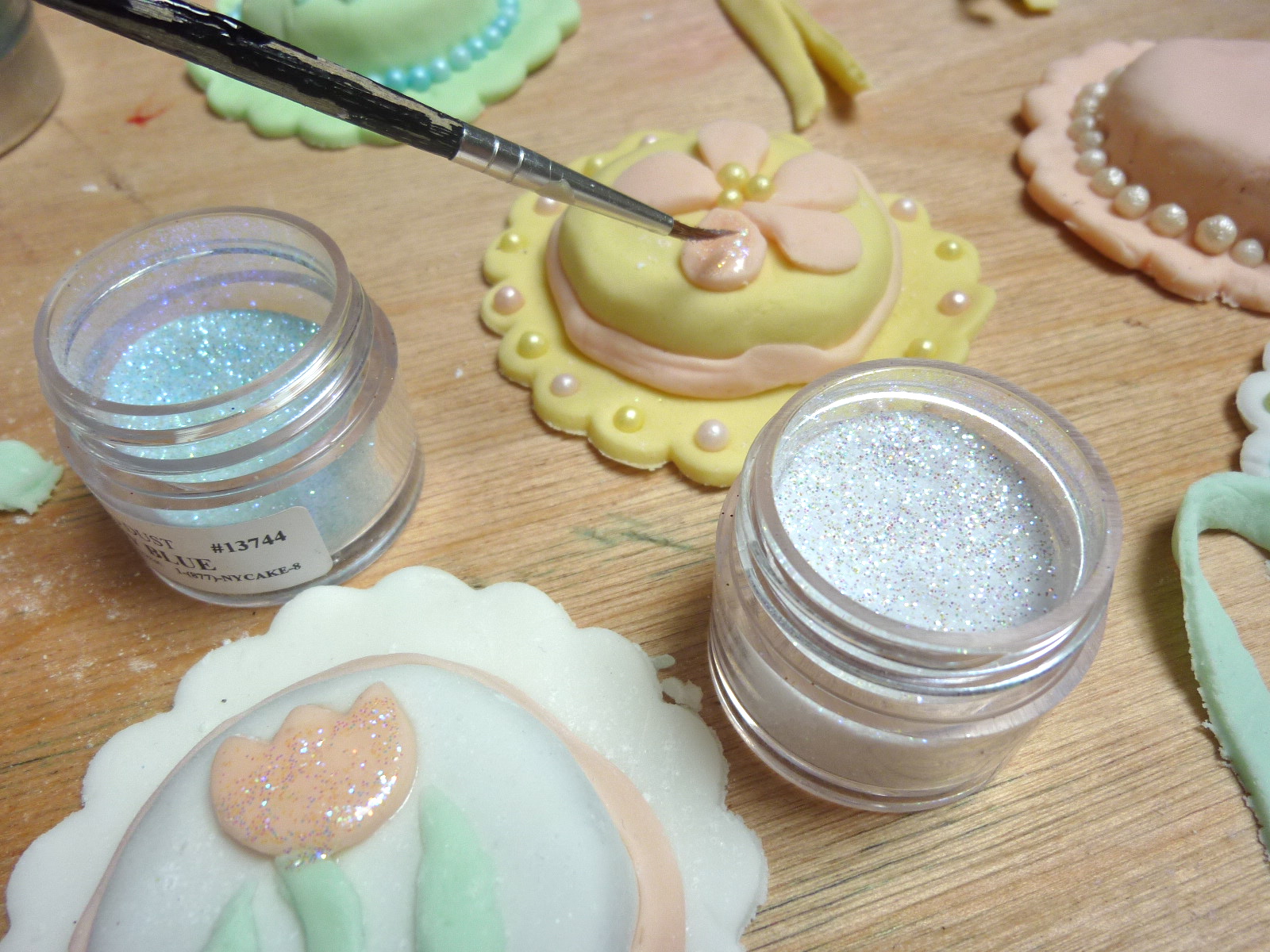 • Decorate with pearls, dragees, sprinkles, etc. I just pushed the pearls in and for the most part they stayed put.