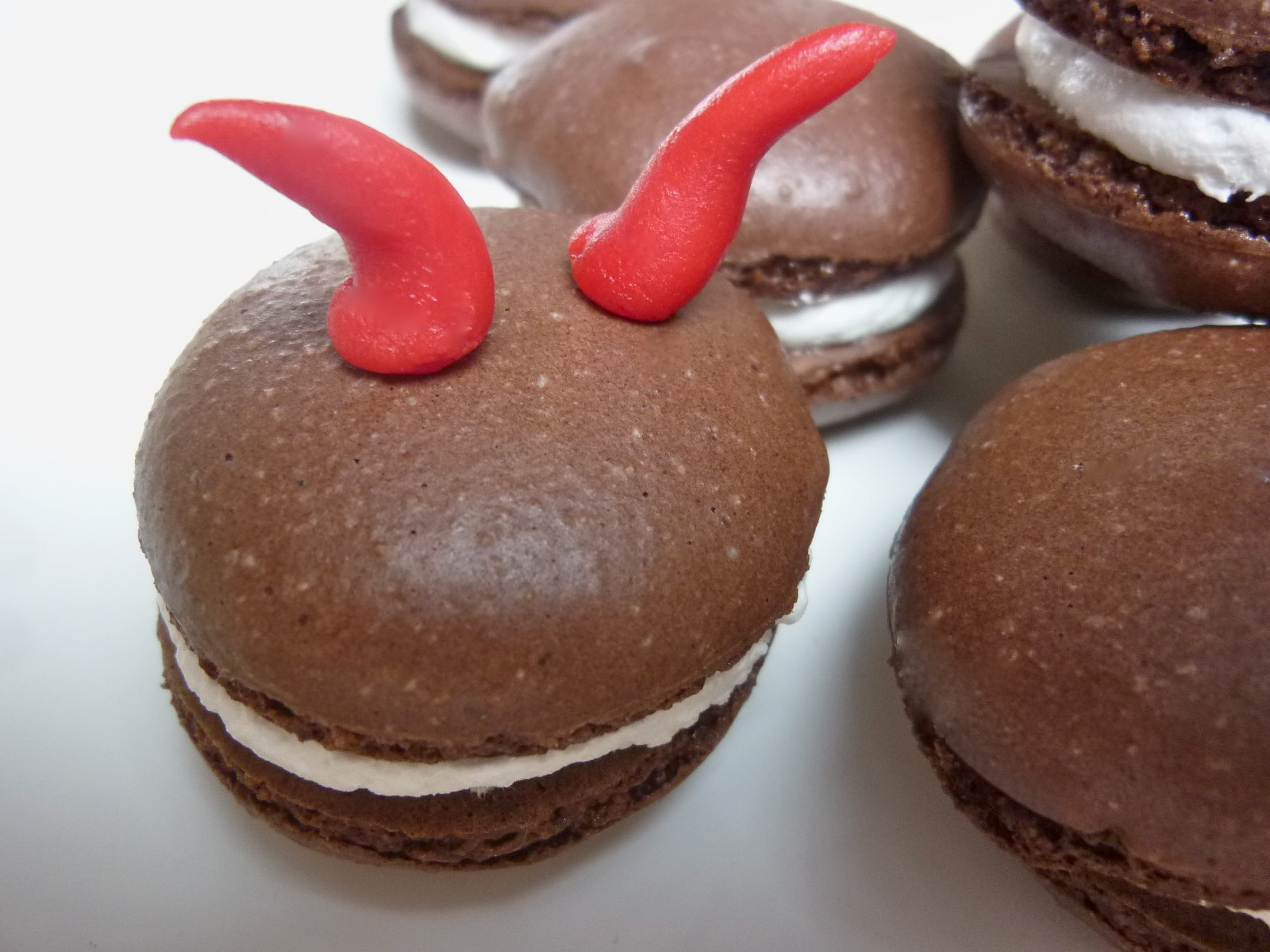 I could not resist putting little fondant horns on these. I am sure I need professional help about compulsively dressing up macarons in little outfits.