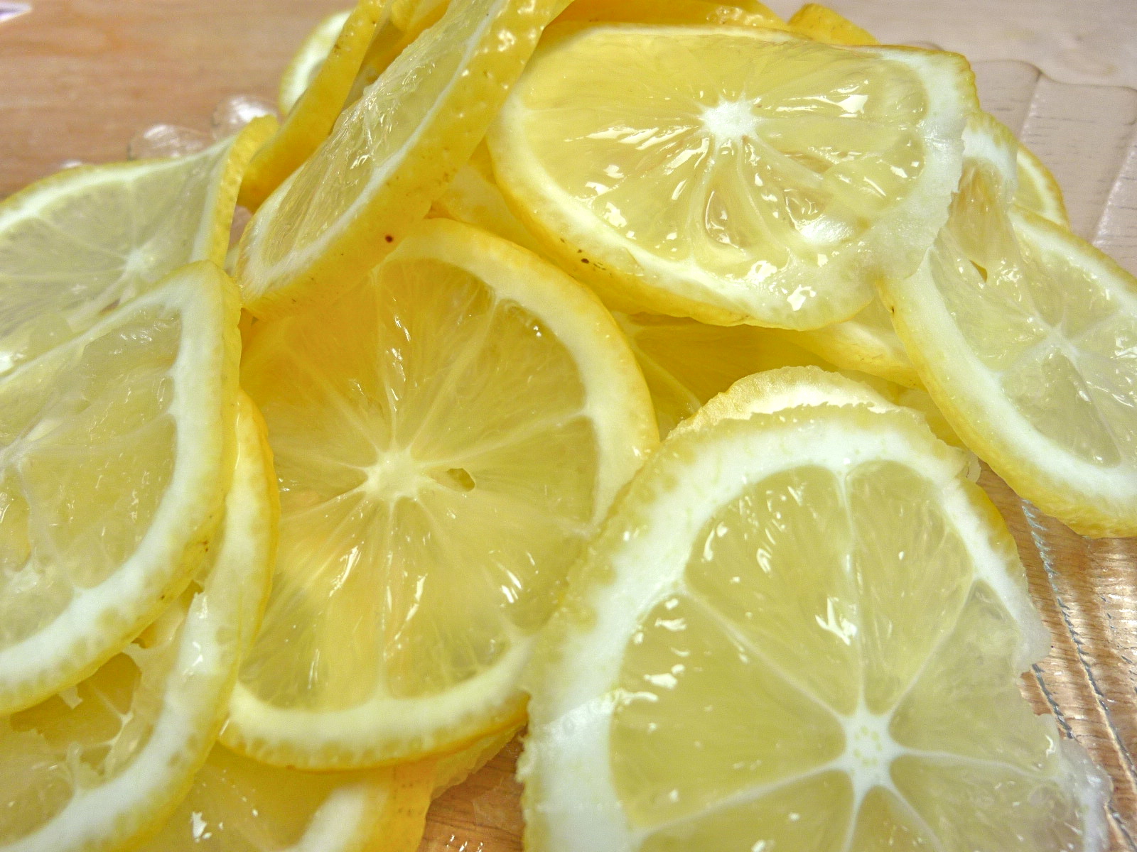 • Slice the lemons as thinly as you can. I used a mandolin.