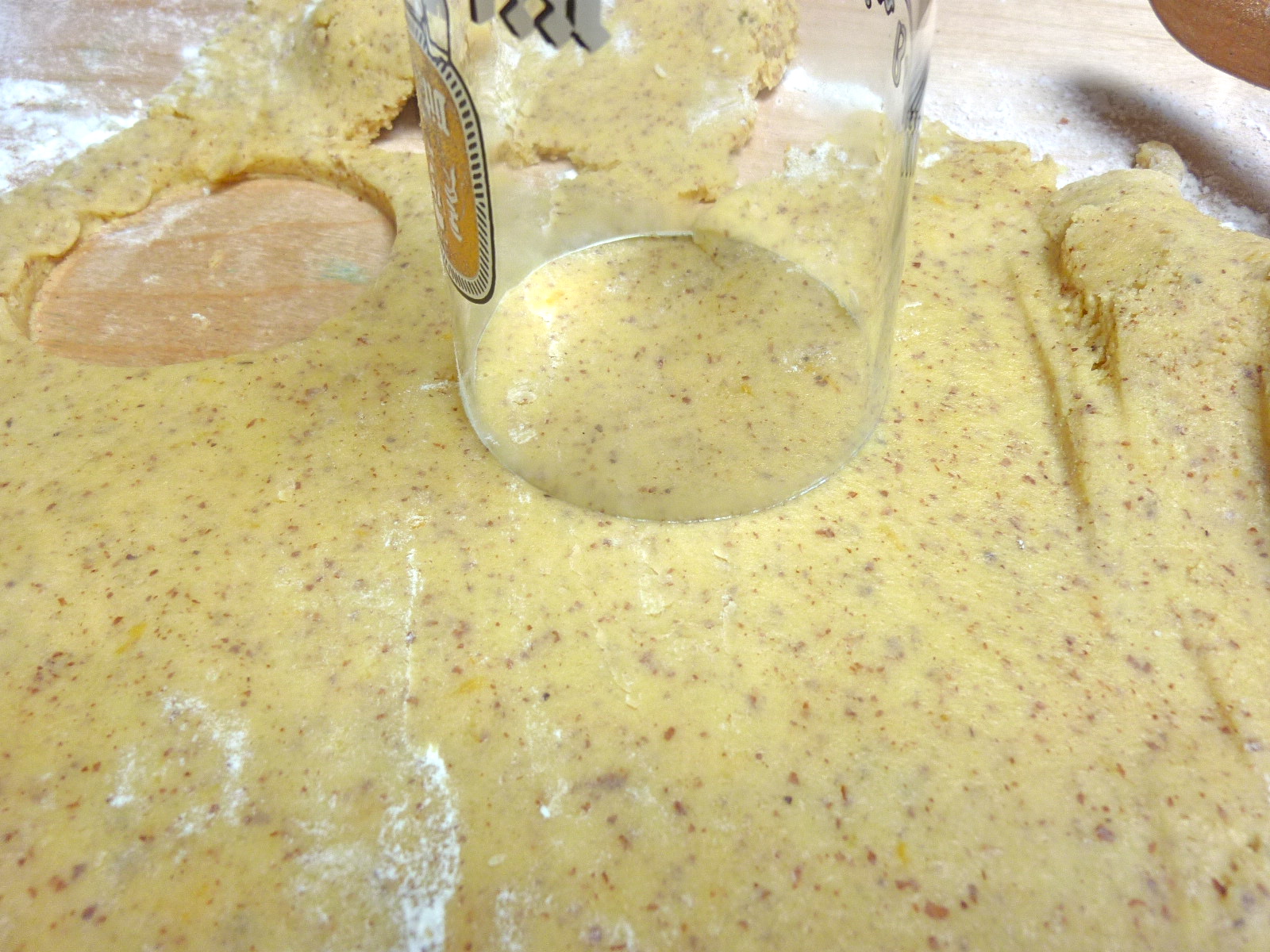 • Remove dough from fridge, roll out on a floured surface and use a cookie cutter (I used a beer glass). Whatever you do use to cut the circles, make sure the size is slightly larger than the lemon slices.