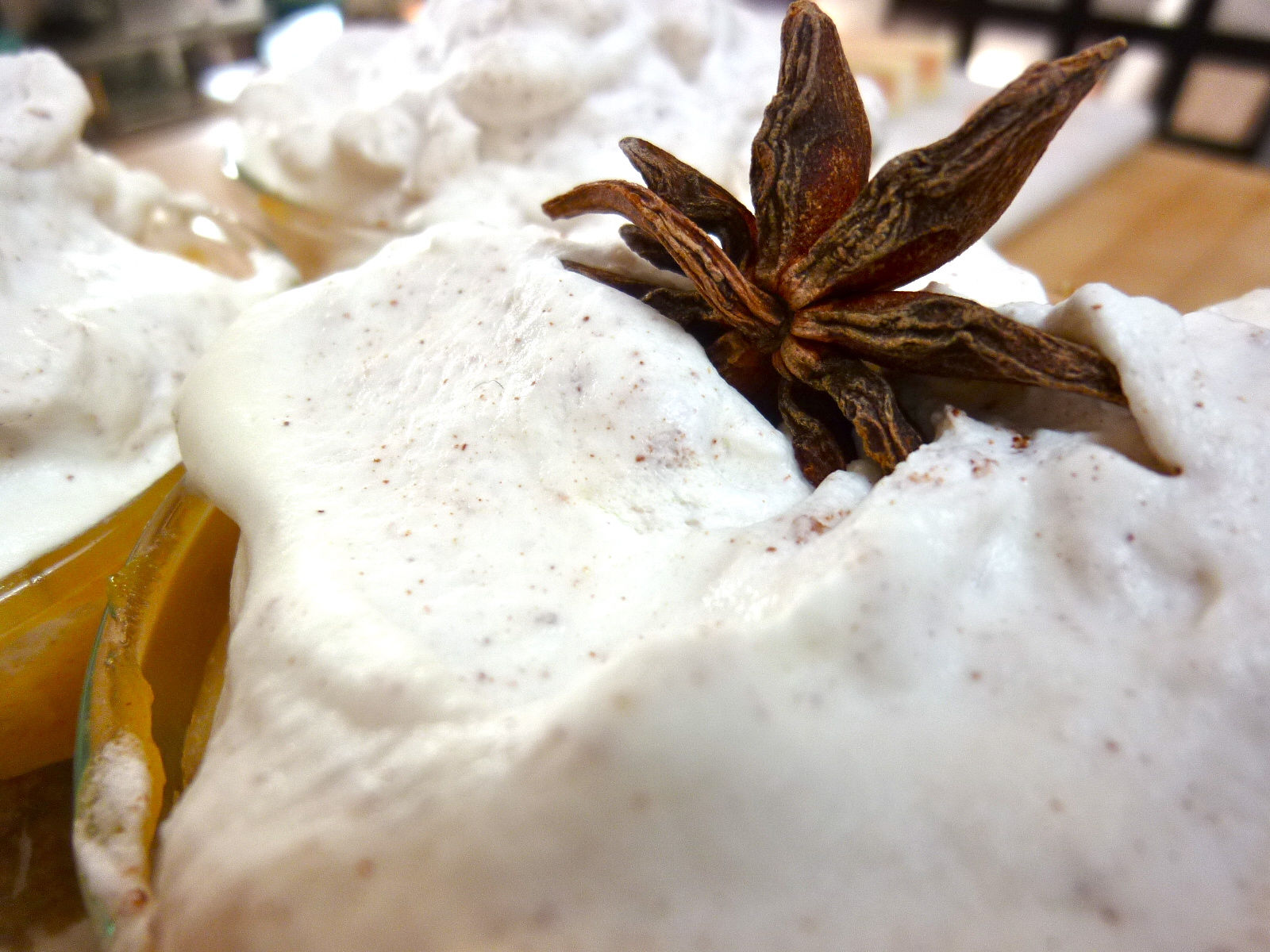 Crumble the gingerbread and layer the trifle gingerbread first, then persimmon curd, then top with the whipped cream until your final layer is the star anise whipped cream on top. Decorate the top of the whipped cream with whole star anise if desired.