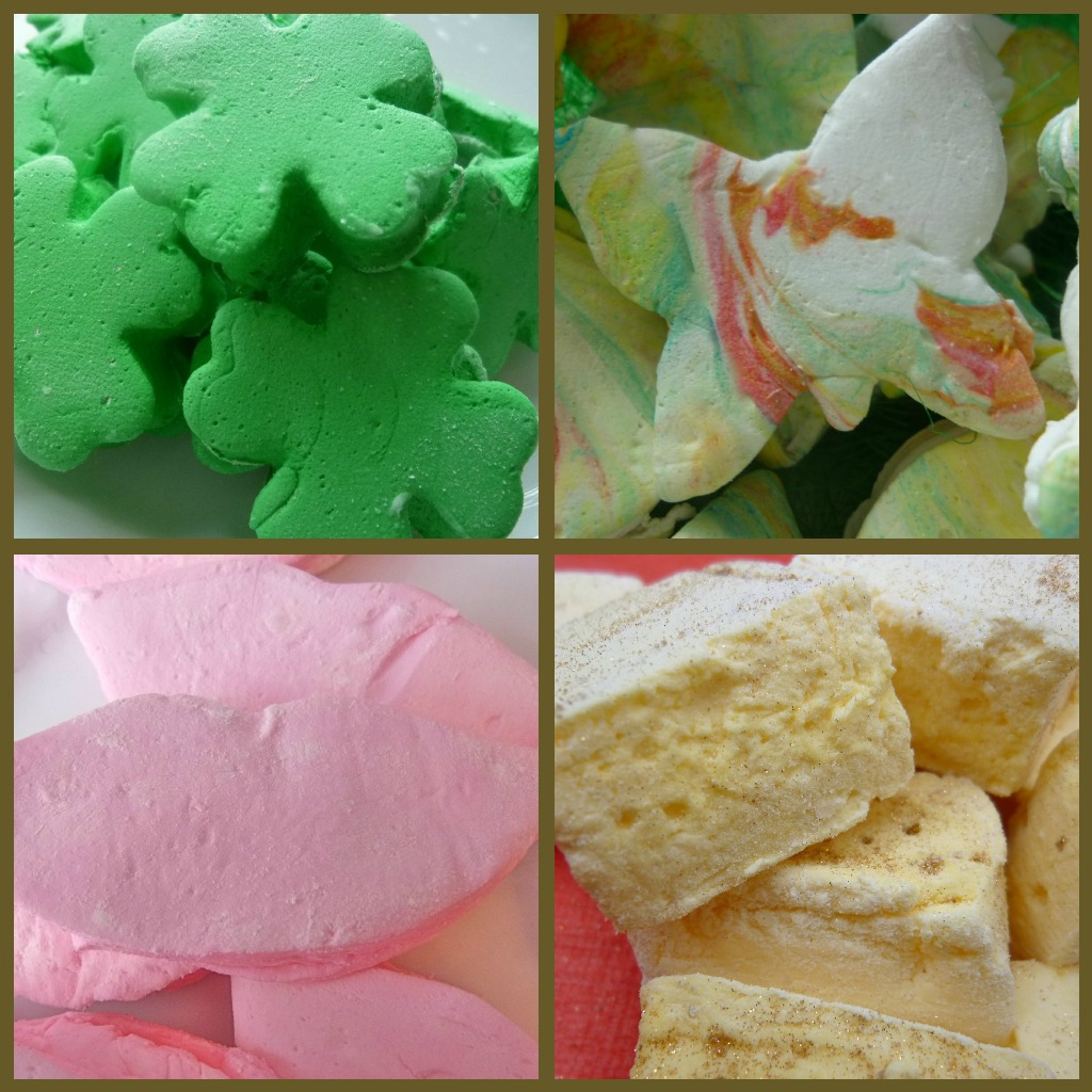 The first marshmallows I ever made were from a recipe on Shauna’s blog, Piece of Cake. They came out perfect and in the numerous times I have made marshmallows since I have always used her recipe, just switching out the flavors and colors.