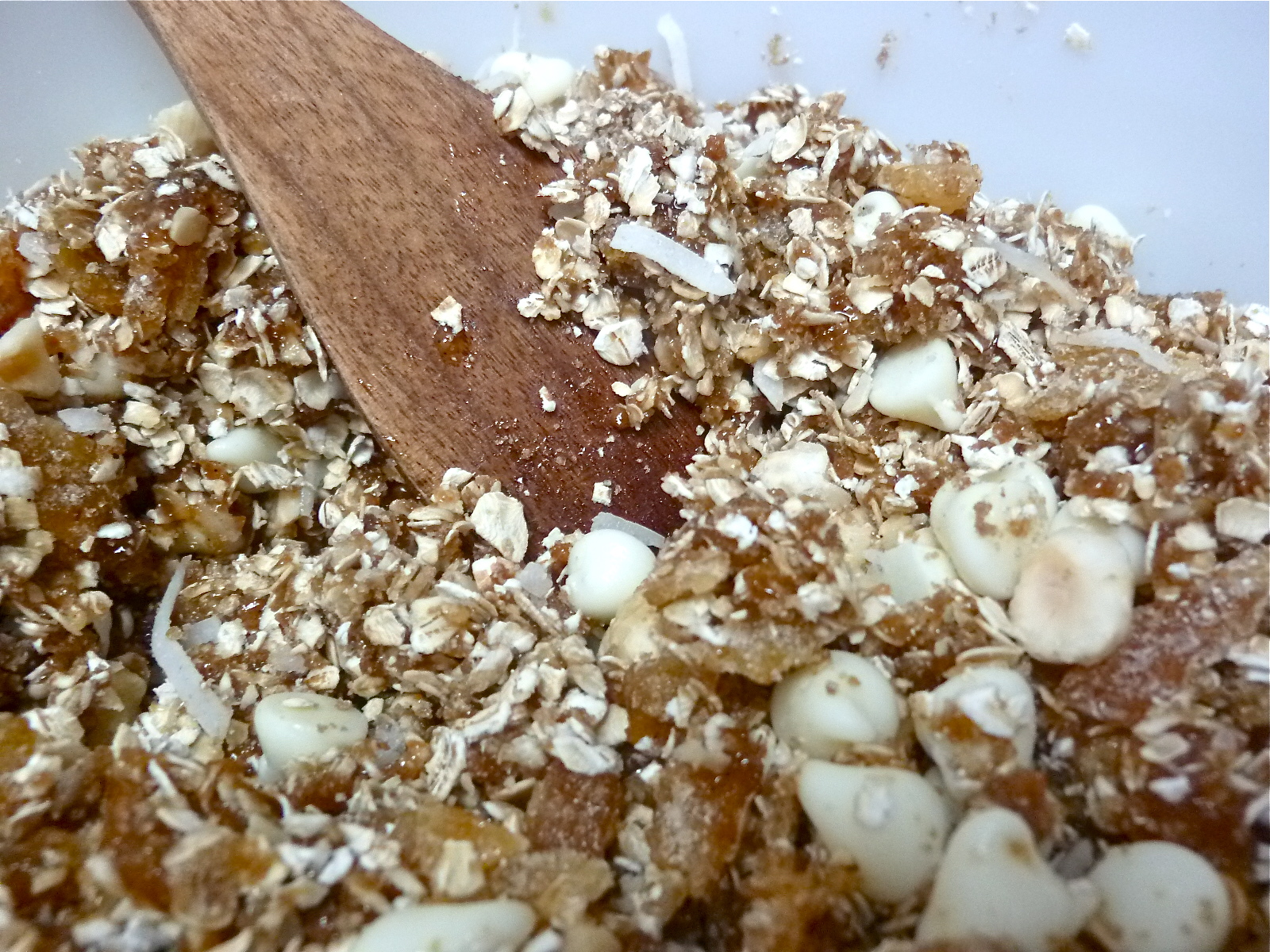 I have been on a granola bar making kick lately using THIS recipe from Honest Cooking. First I started with kitchen sink style granola bars using up all the bits and pieces of leftover dried fruits and chips in my cabinets. I did that twice and between sharing them at work, with friends and family, both batches barely lasted a day.