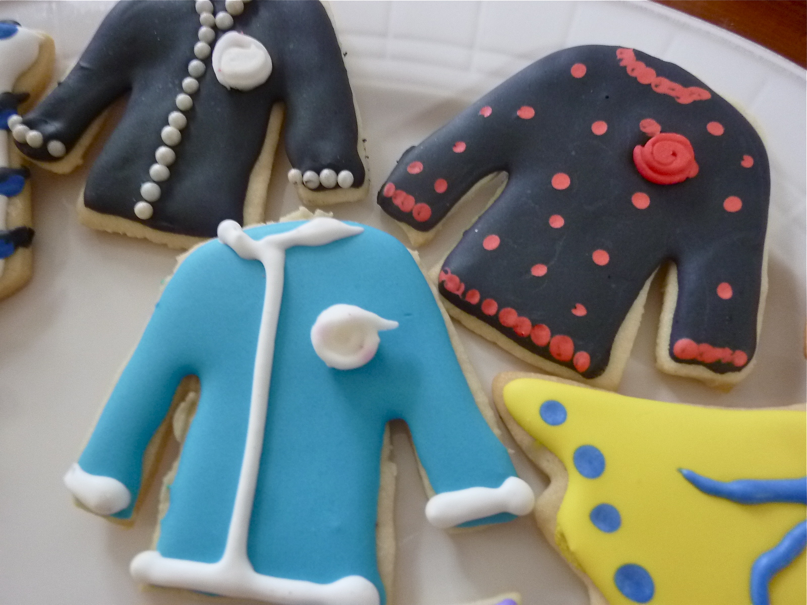 So in honor of Nina’s presentation, I brought “Dress for Success” cookies. Since Nina’s specialty are jackets. I made mostly those with a few ties and dresses thrown in to mix things up a bit.