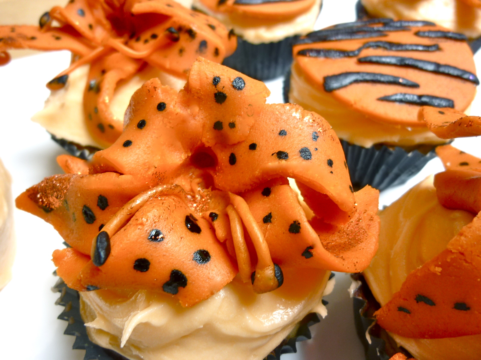 I admit these were a bit of a failed fondant flower experiment. I had some leftover orange colored fondant and was briefly in love with the idea of making tiger lilies.
