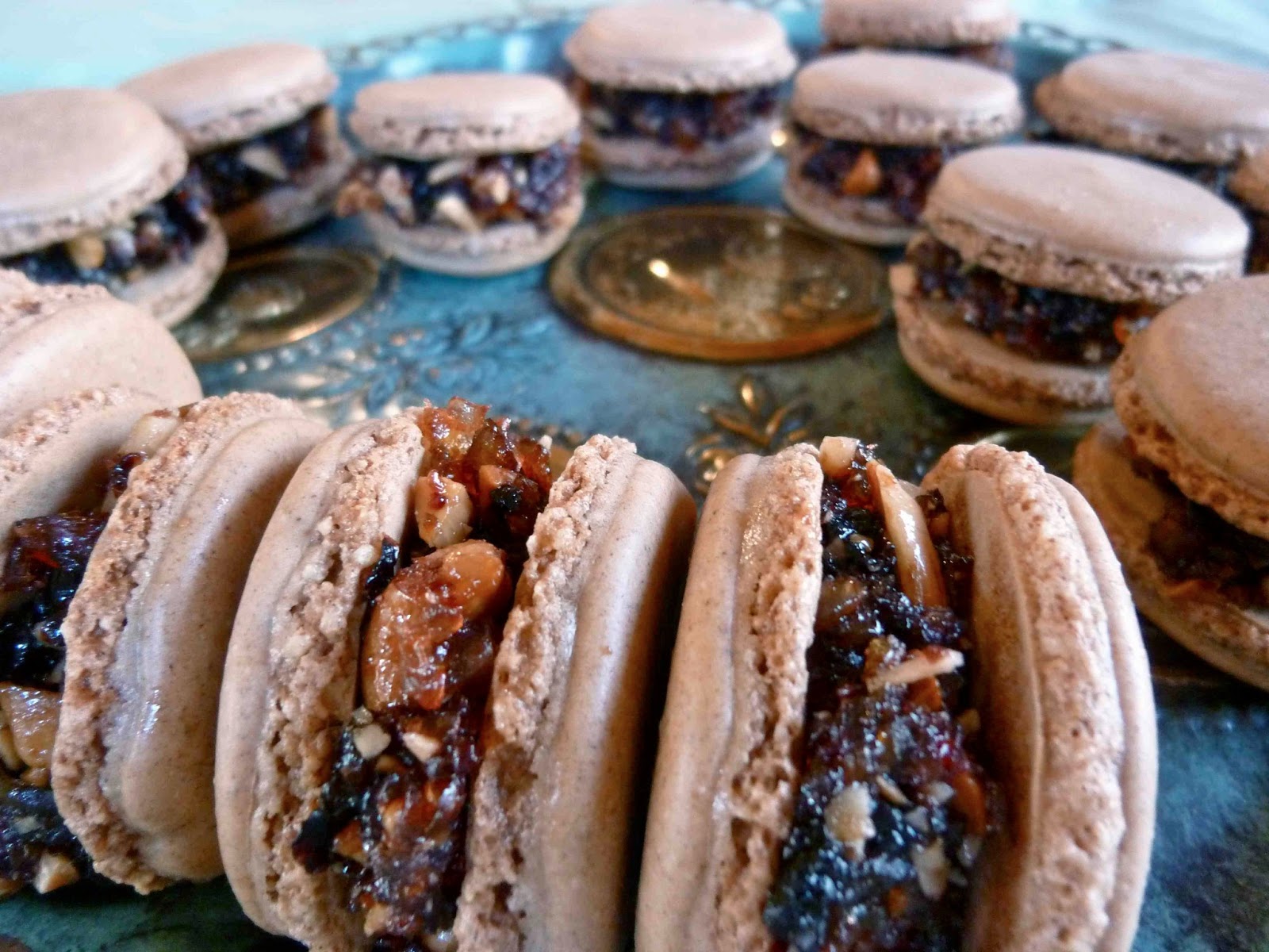 Then took it one step further and used the finished charoset to fill cinnamon French macaron shells.