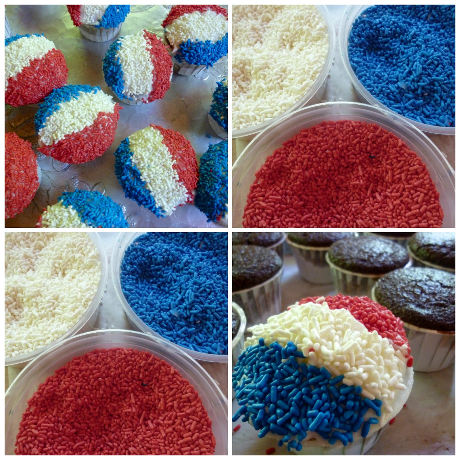 Speaking of cupcakes, I had a crazy weekend but managed to squeeze out these snow cone red white and blue cupcakes for a friend’s birthday.