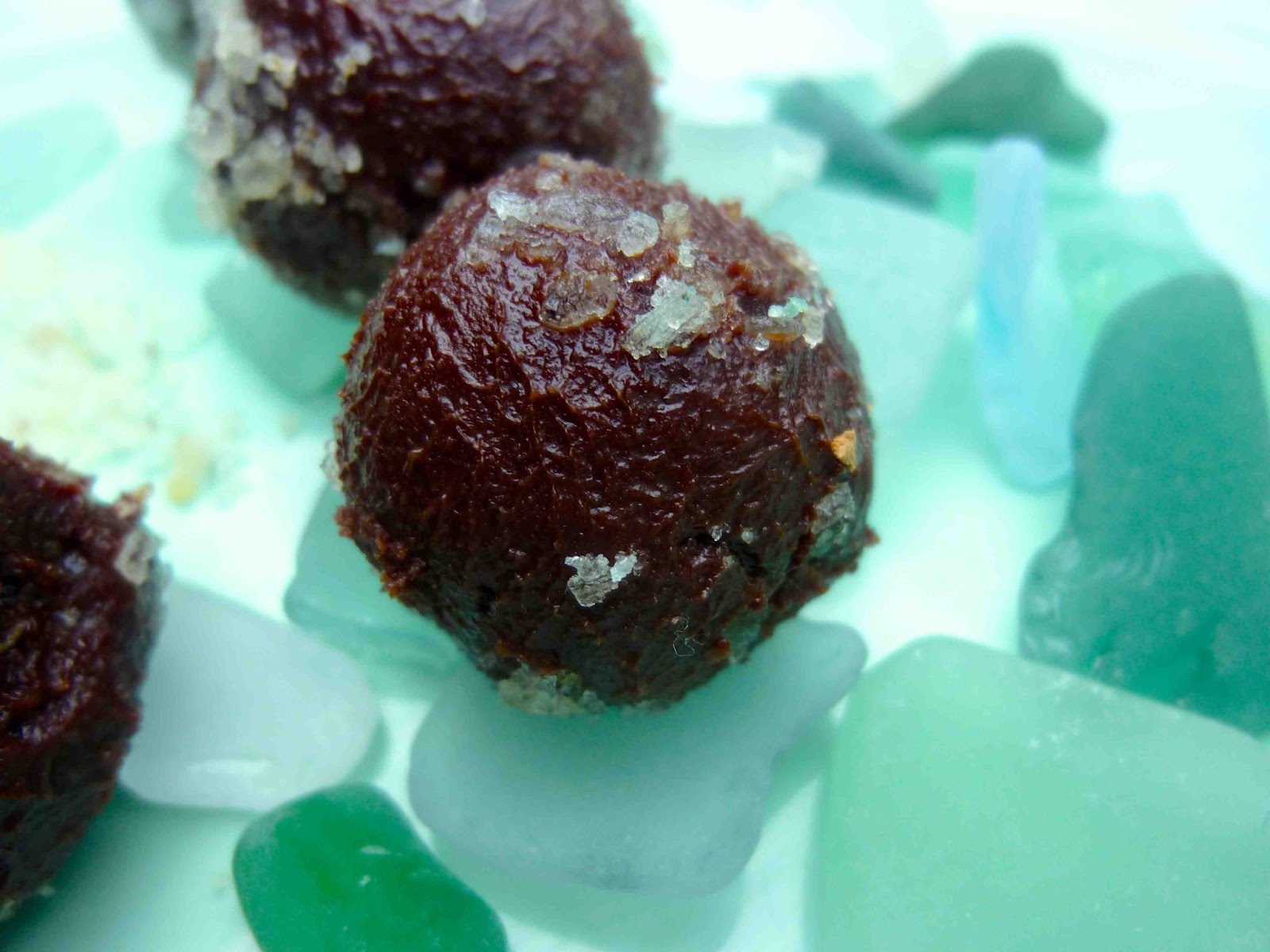 I used  dark chocolate to make the truffles truffles, added a bit of chocolate liqueur and then sprinkled them with the flavored sea salt. So delicious.