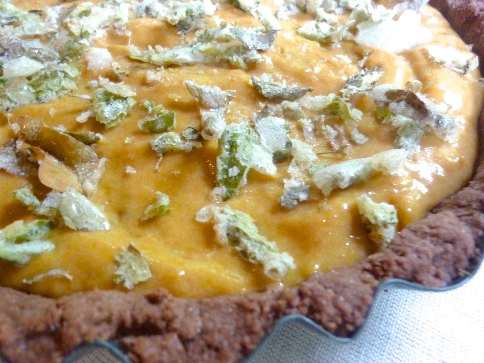 Apricot Curd Chocolate Tart with Candied Lime Basil