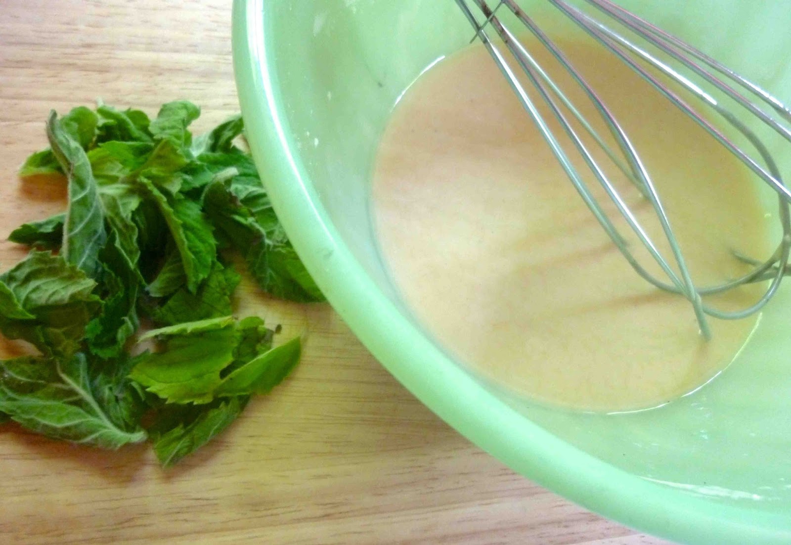 • Take a 1/4 cup of the grapefruit mint leaves and finely chop them.