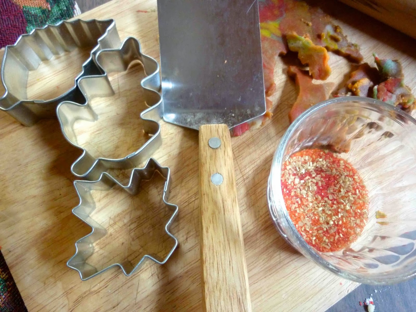 There were so many pretty leaf-shaped cutters in my cabinets waiting their turn, I thought, why not give it a go with Fall leaves for the season?