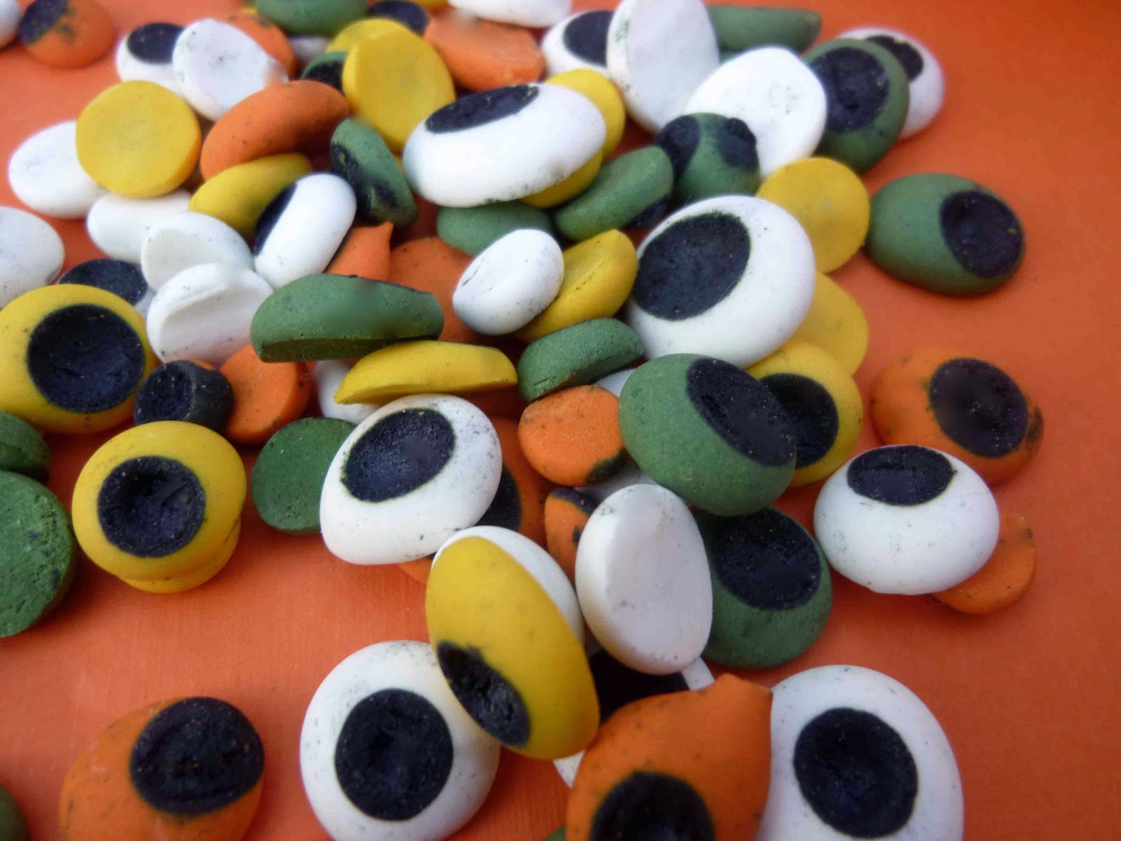 Periodically when I have the time and inclination I make eyes out of leftover royal icing. For a past halloween treat, I dumped a bunch of them into a Monster Eyes Oreo Bark.