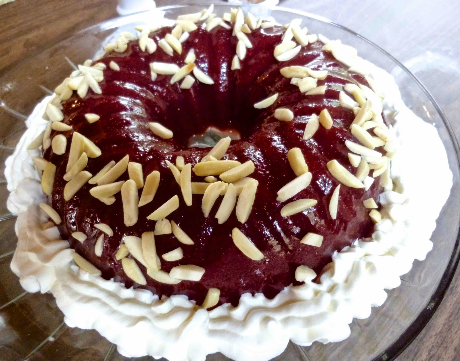 This dessert, called “Cognac Pflaumenpudding” in German is more like a boozy jello mold. However, the flavor is much bolder than a traditional jello dessert.