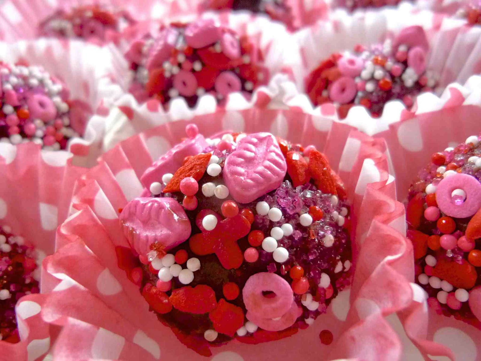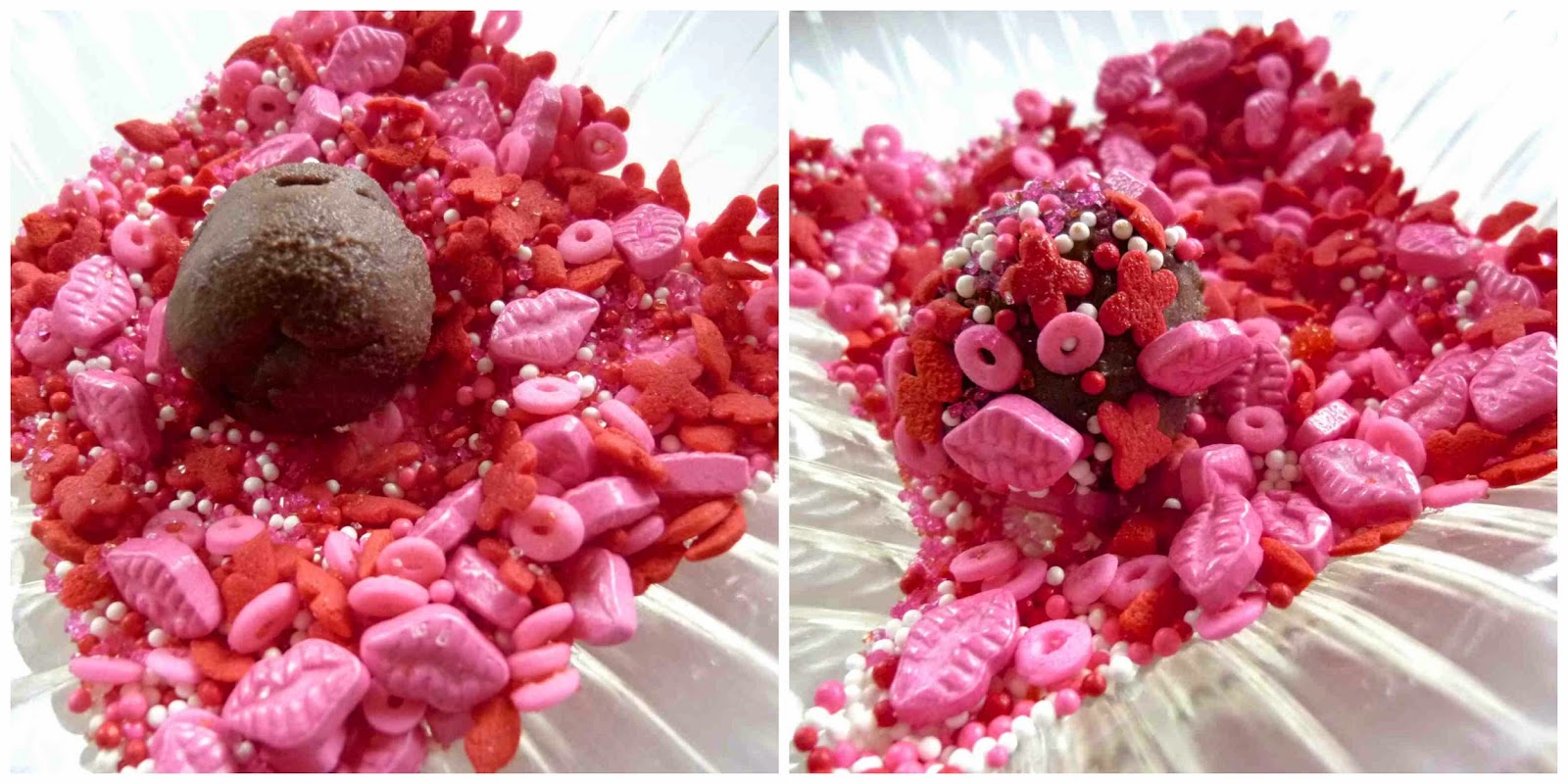 Once these truffles are rolled in Valentine’s themed edible decorations and placed in a little paper cup, they are the perfect way to say “I Love You” choco-raspberry style.
