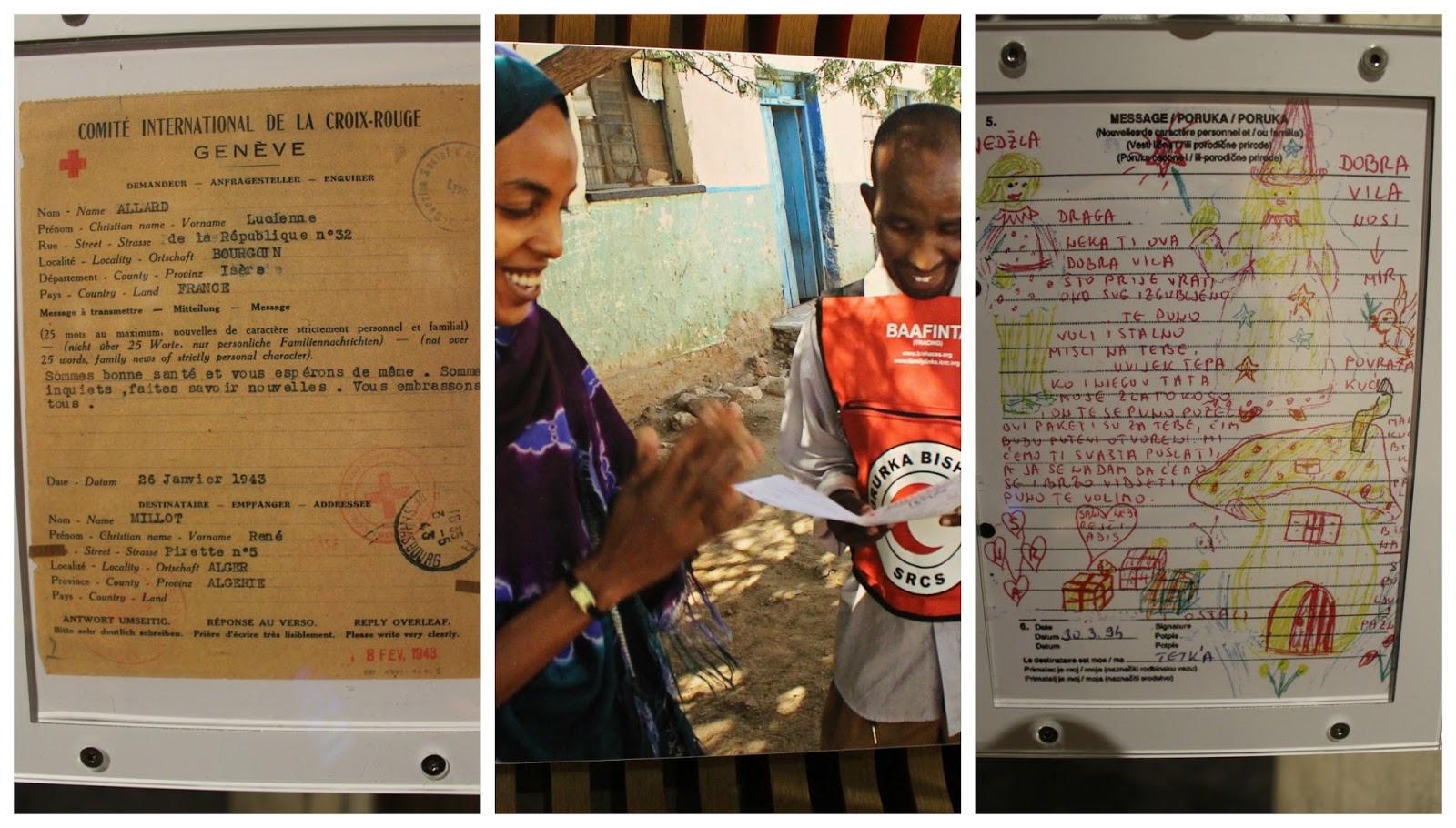 The organization also acts as a messenger between prisoners and their families. The exhibit explains the journey of a message.