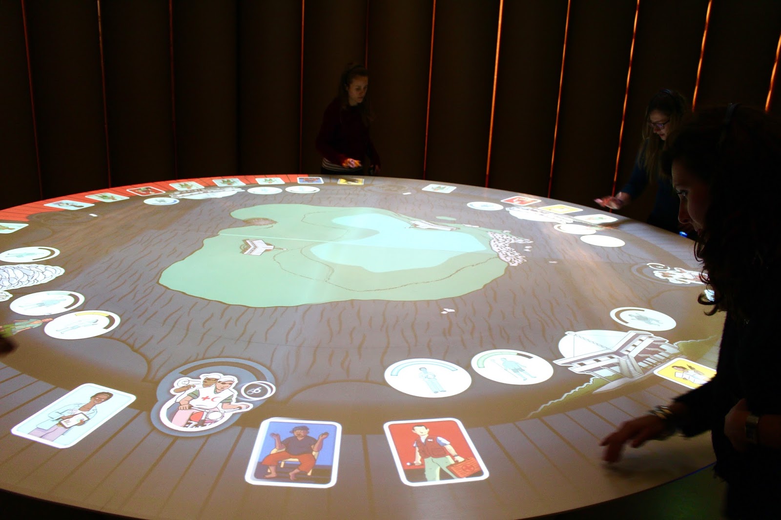 The star of this section was this interactive exhibit. The large roundtable is a touch screen that represents an island. Participants were asked to prepare in real time for a hurricane. Against a timer, we had to triage and organize what to do first, second, third, etc. before the hurricane hit using the touchscreen. I was sweating by the end of it.