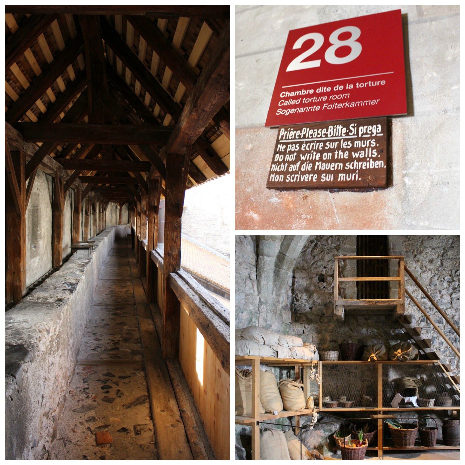 After paying the 12,50 Swiss Franc entrance fee, I walked the bridge over the moat and entered the Castle’s ancient stone walls. It felt like an instant time warp. The castle dates back to the 1150 and contains may fascinating layers of history which cover the Savoy, Bernese and Vaudois periods.