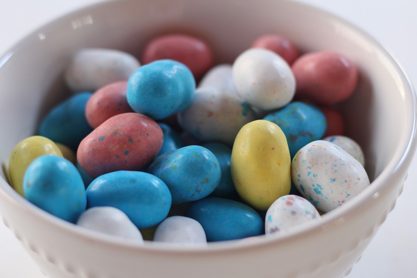 - 1 package malted milk eggs, jelly bean eggs, or a mixture of both.