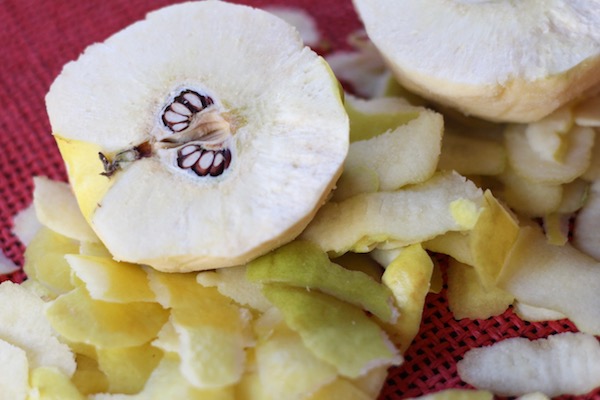 1. Peel and core the quince. Cut the flesh into small pieces.