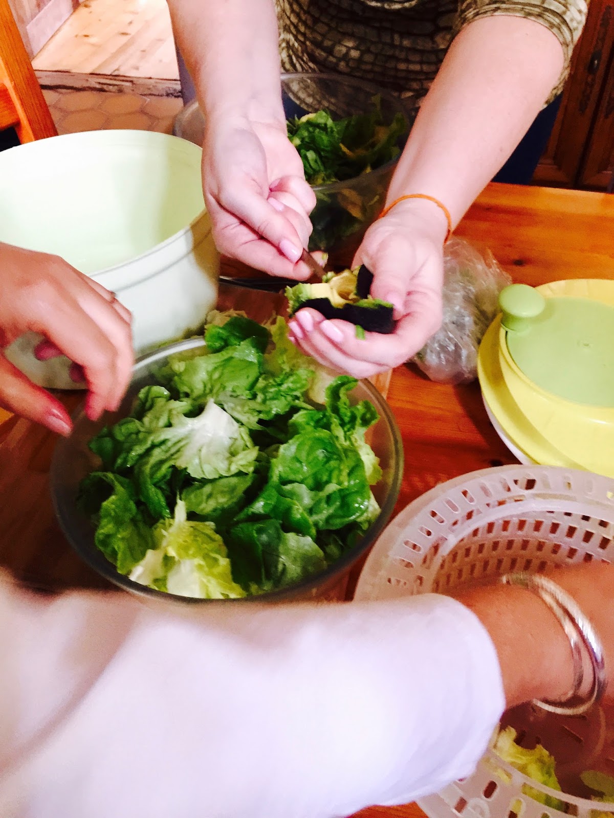 Paola and Stacey’s arrival bumped up the energy of the group another notch. We were still waiting on Michaela and Cornelia who unfortunately had car trouble on the way from Vienna. We went ahead with lunch (those Quiche!) and Paola and Renee pitched in to make the salad and the dressing.