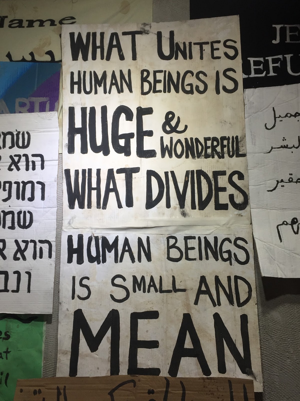 Our van driver and guide was the wonderful Eli from Israel4All, a company specializing in accessible travel. We made our way surprisingly easily across the border and to the front door of the hotel which is situated right up against the wall dividing Israel from Palestine. Every room has a view of the wall.