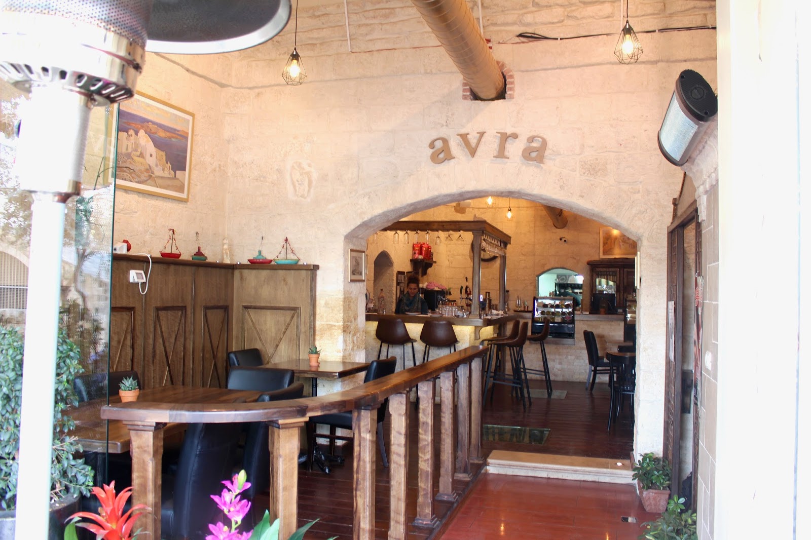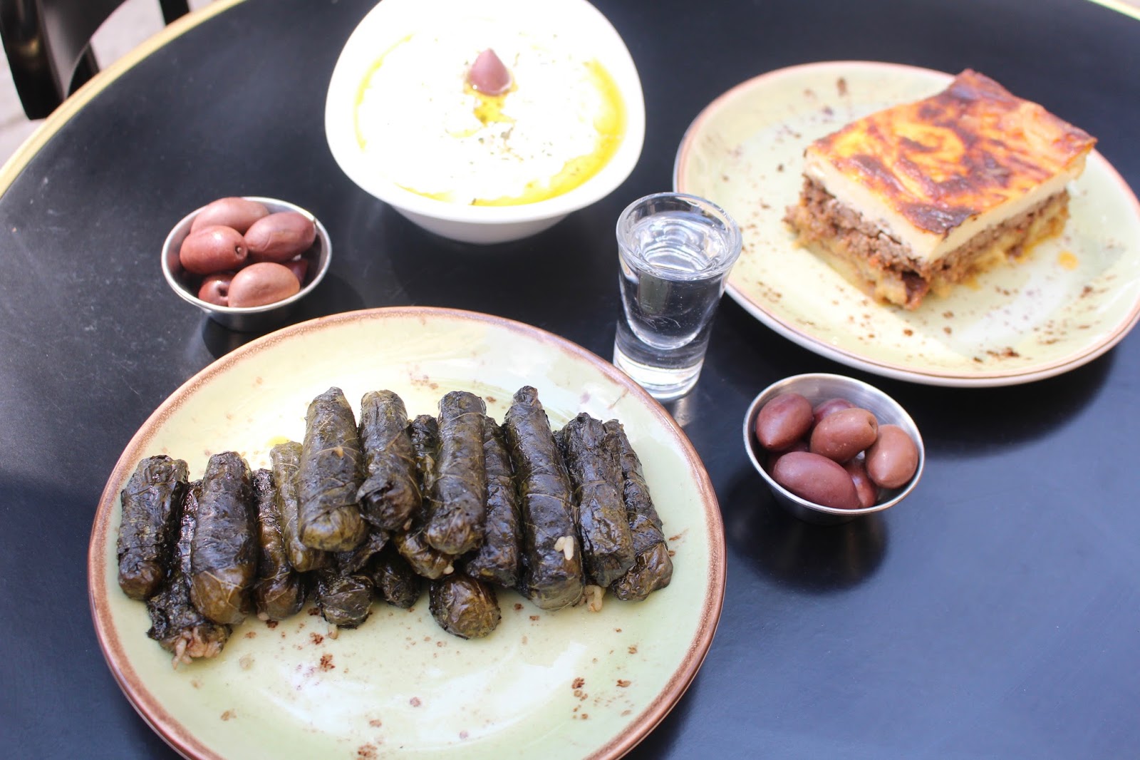 Right next door is Avra Cafeteria, a pretty restaurant serving a mix of Arabic and Geek inspired dishes. We were offered an assortment of dishes to try plus a shot of anise liqueur.