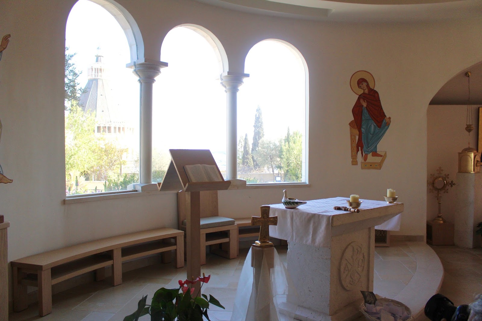 The rooftop is worth a visit. It offers beautiful views of Nazareth and is landscaped with biblical plants.