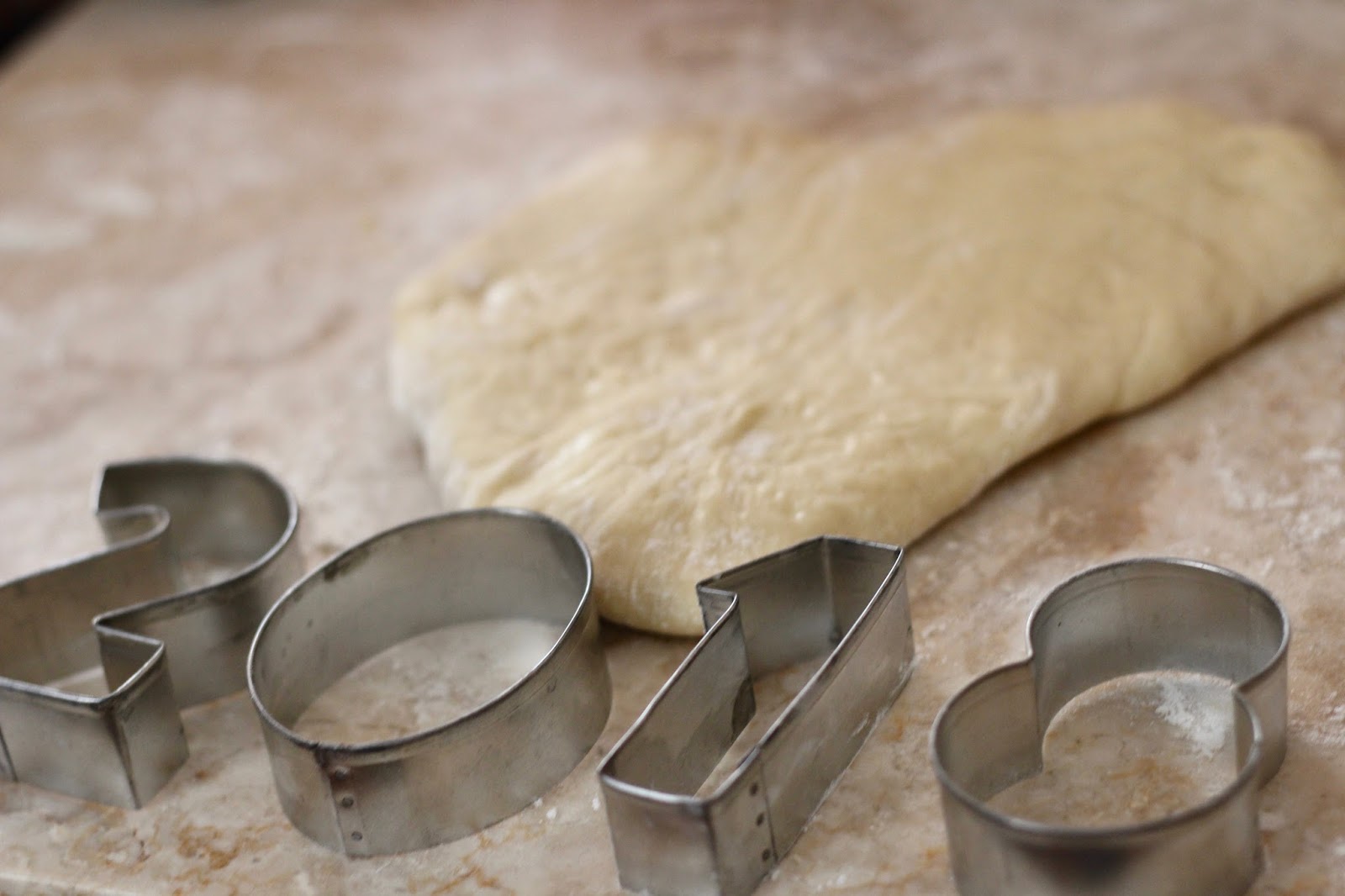 Cut with a floured doughnut cutter or number cutters.