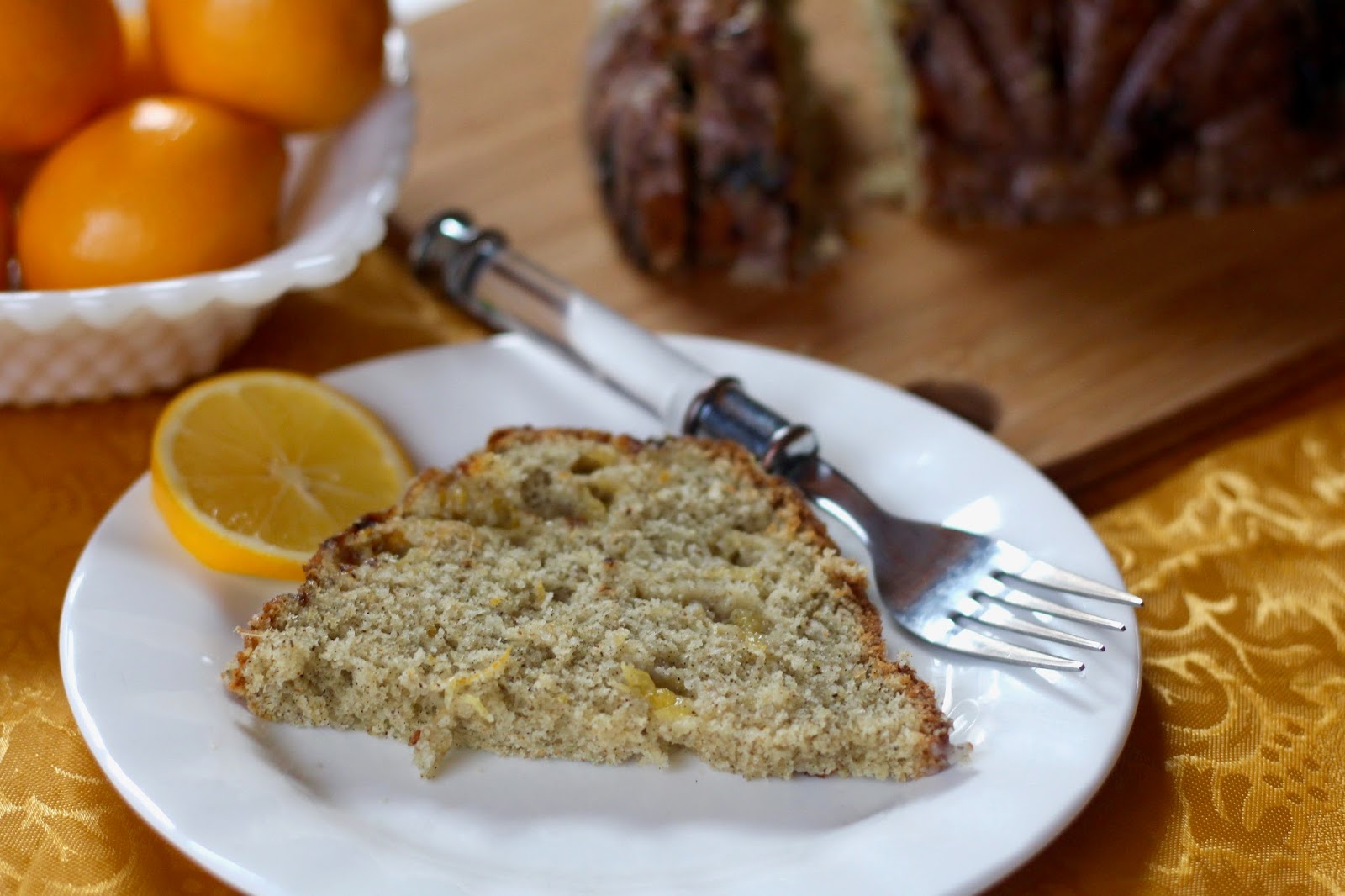 This cake is super delish. The pieces of lemon in the cake provide lovely bursts of sweet-sour flavor and the vanilla bean makes a tasty pairing.