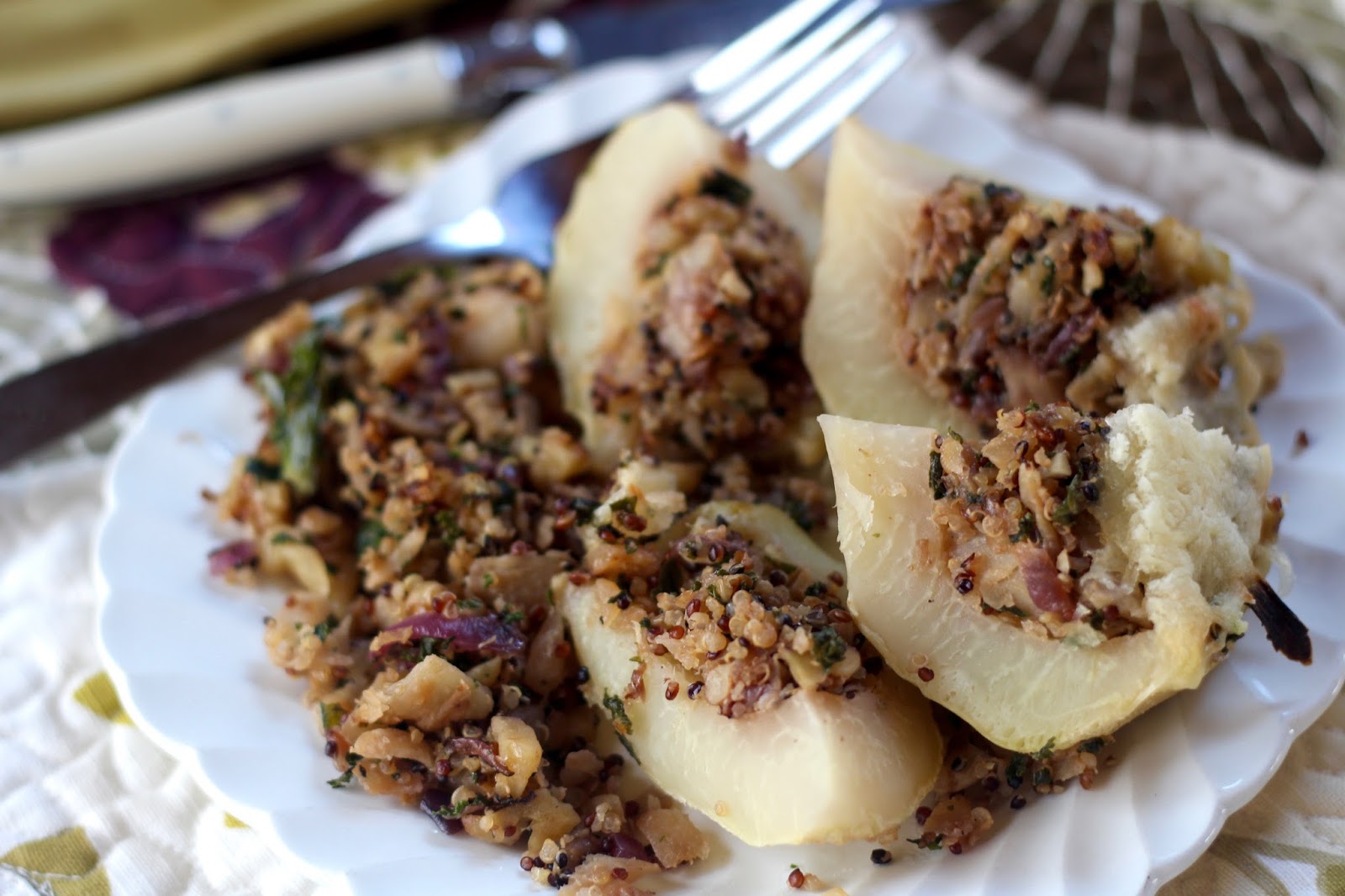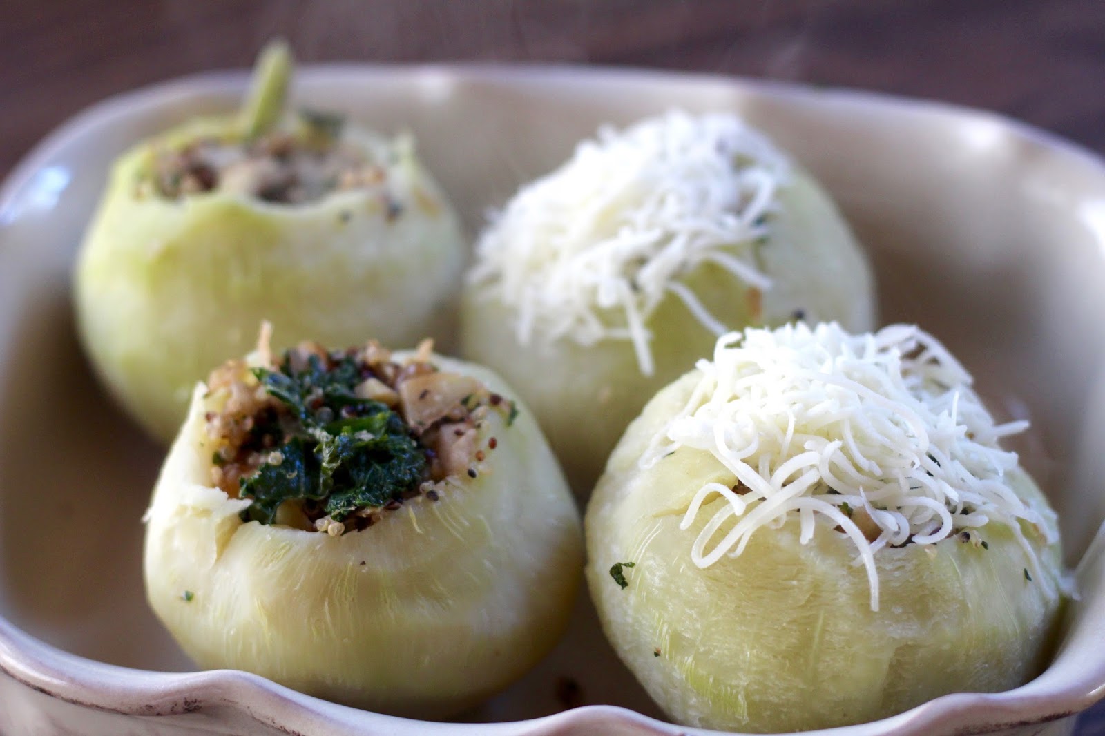 Kohlrabi Stuffed with Quinoa, Kale & Walnuts