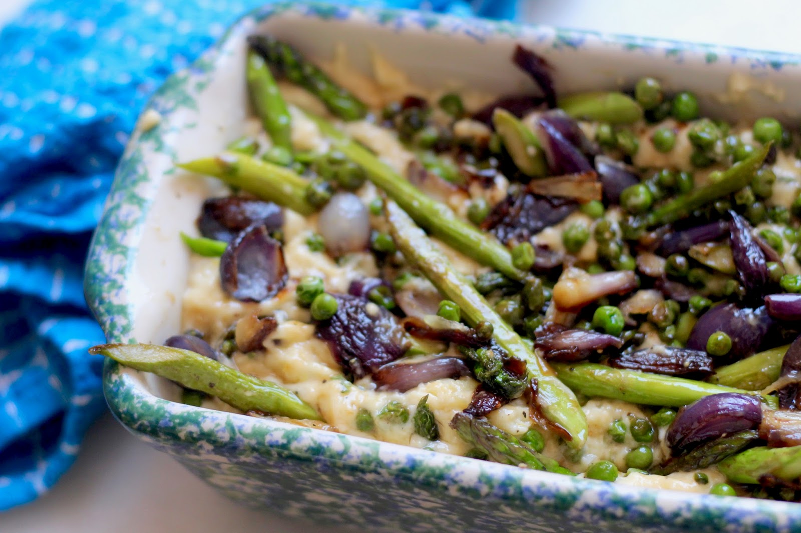 So what to make? After a frantic search through my spring recipe file,  I had my idea. Folding seasonal vegetables into a savory, cheesy cake seemed like a winner to bring along to share in the food fun. Hello Spring Vegetable Parmesan Loaf Cake.