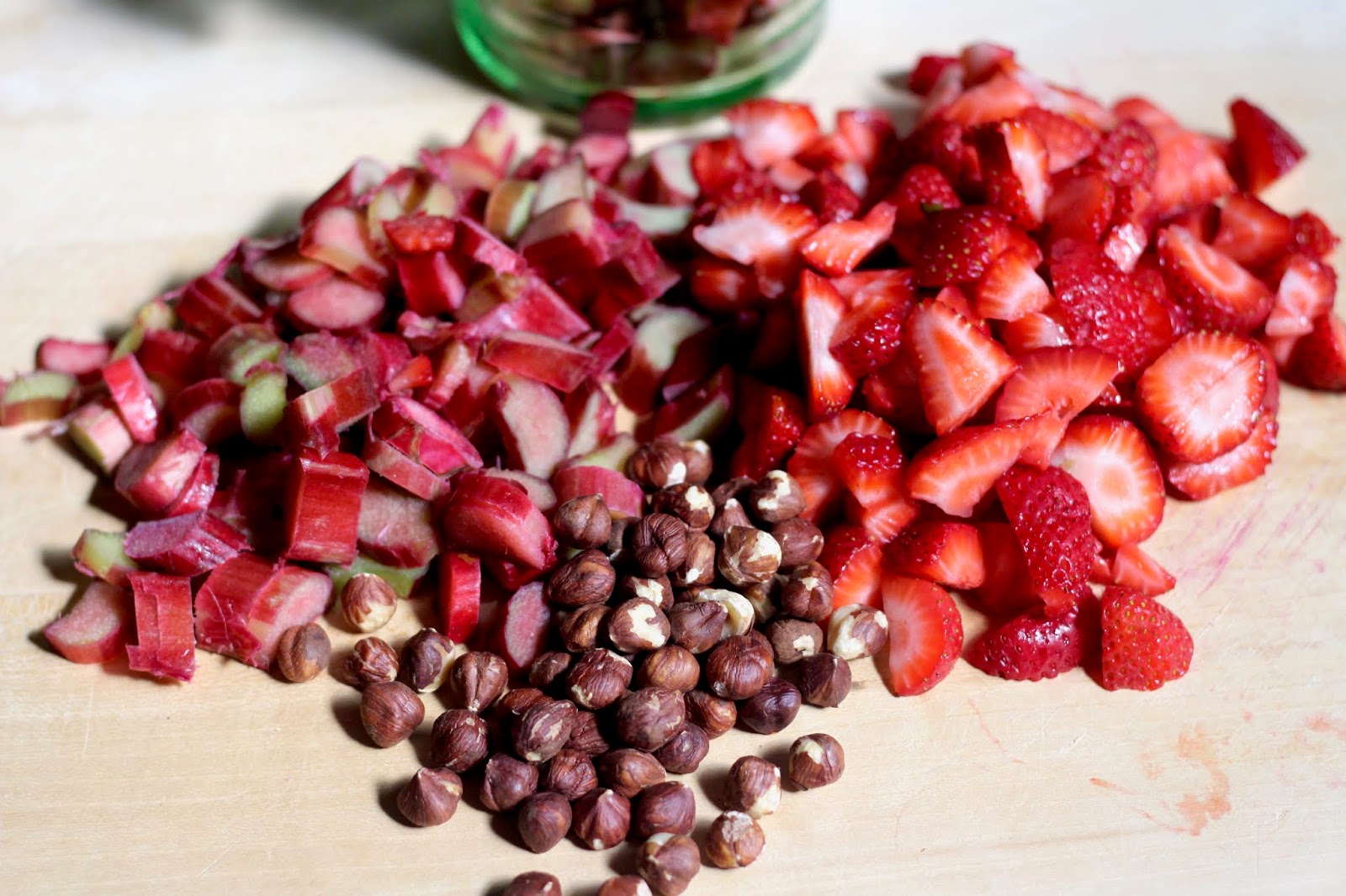 strawberries, rhubarb, and hazelnuts