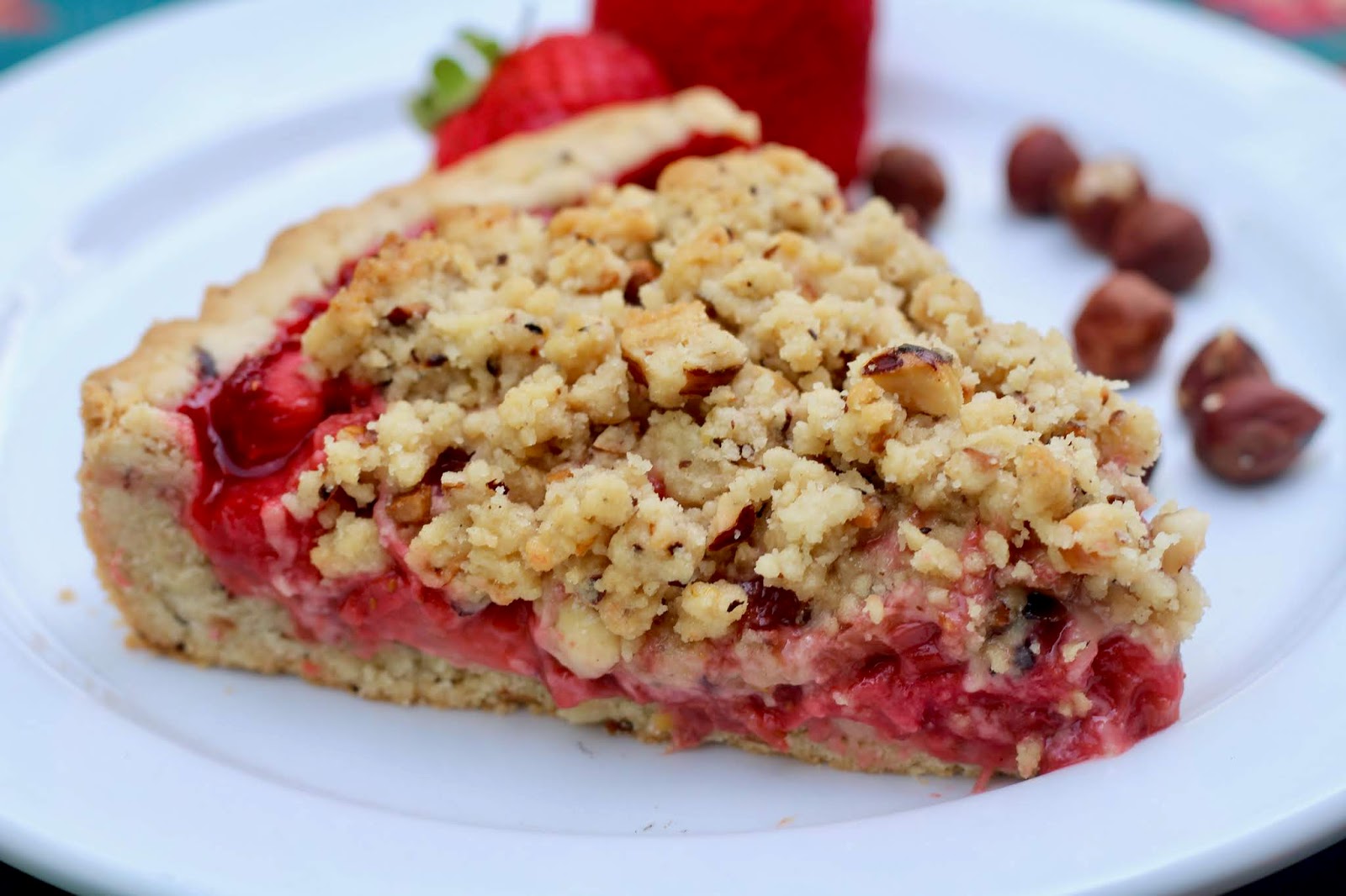 Strawberry Rhubarb Hazelnut Streusel Tart