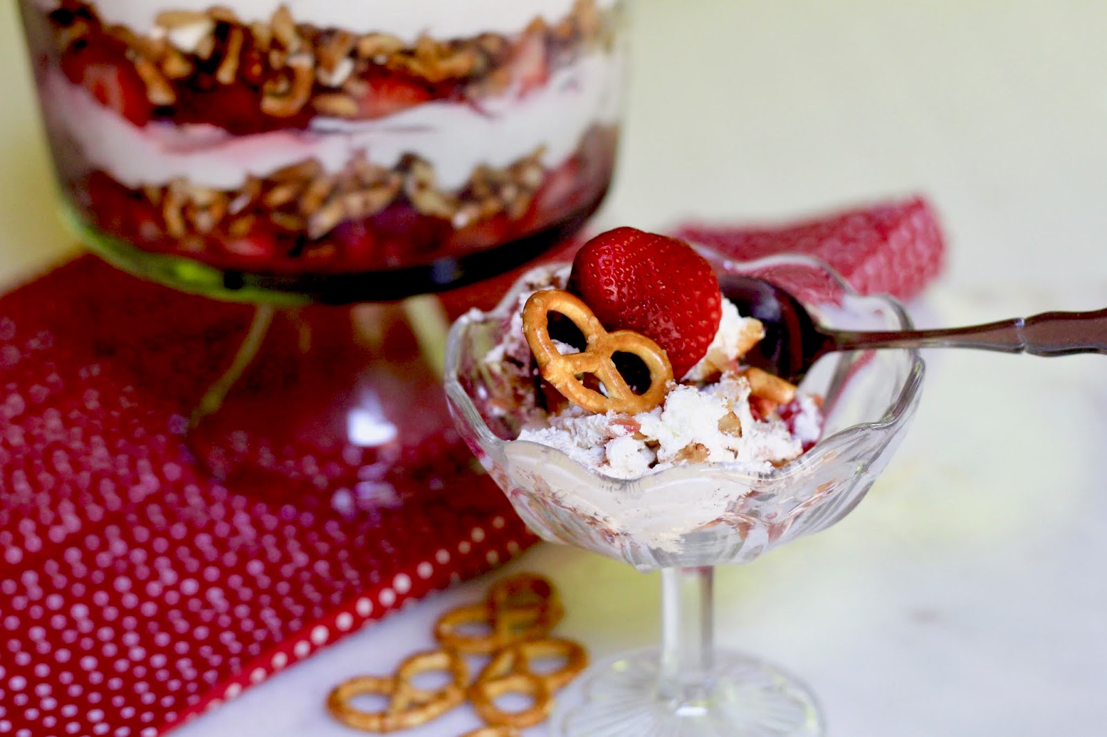 Strawberry Yogurt Cream Pretzel Trifle