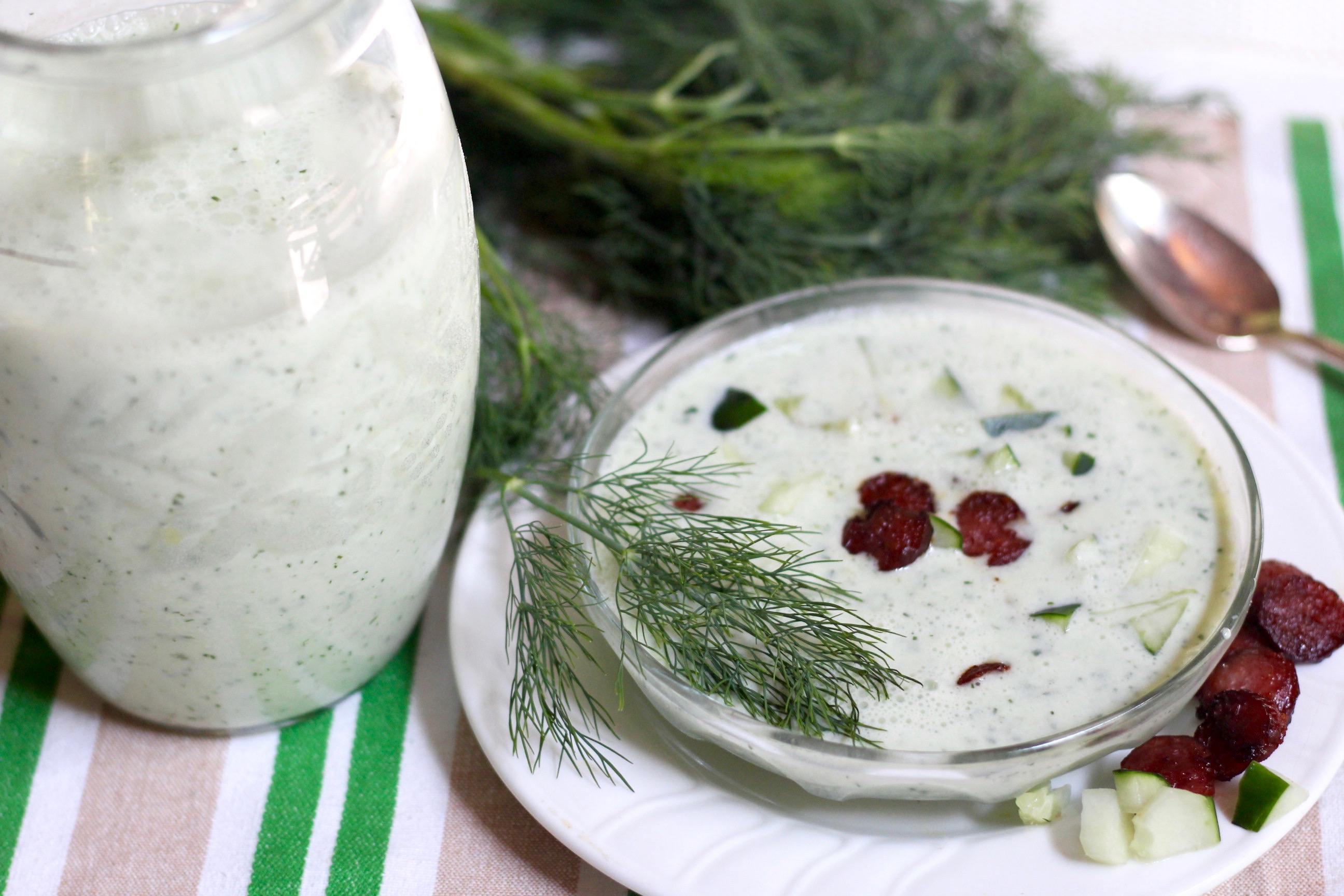 Cucumber Yogurt Soup with Bratwurst Chips