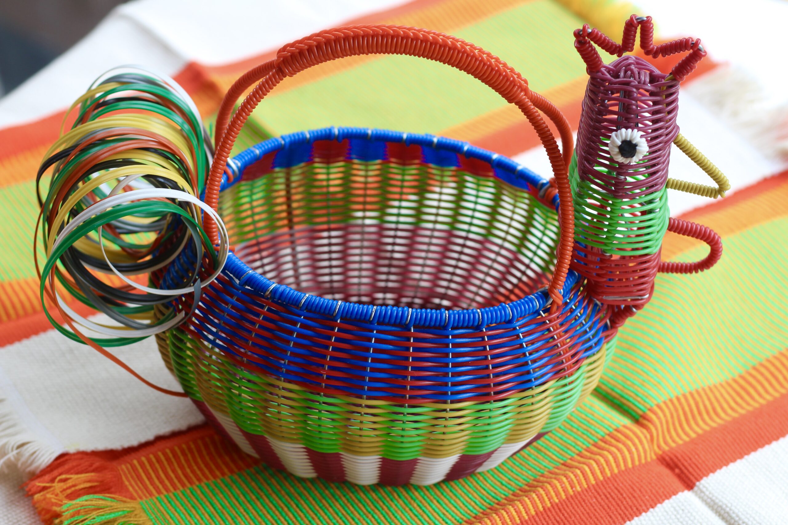 In addition to napkins, I bought placemats, tin chargers, and tin dragonfly napkin rings. My favorite purchase is the Rooster Basket. I definitely was not leaving Mexico without it. It just makes me happy.