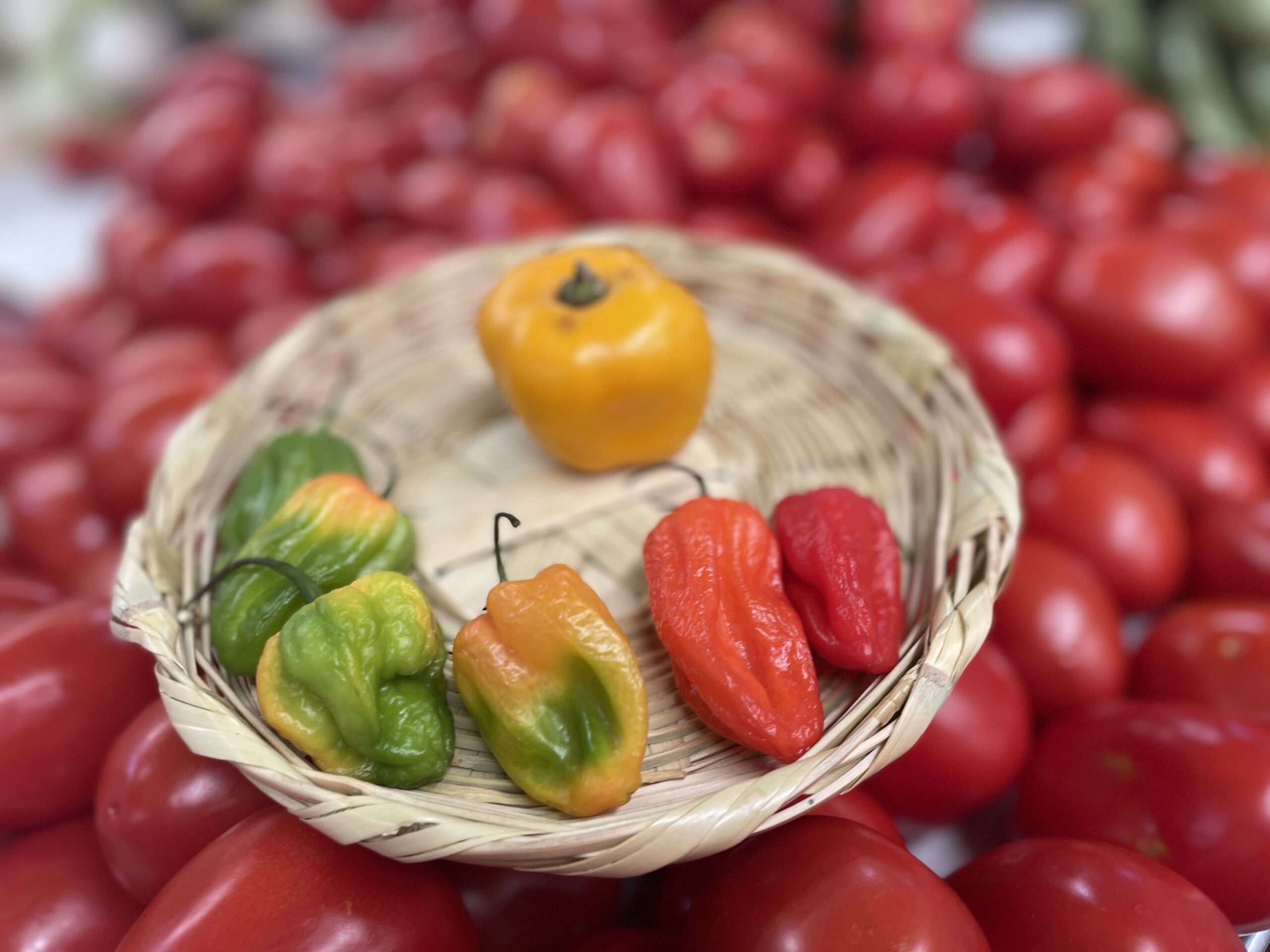 Between the two, we ate a satisfying breakfast. Then it was on to the Medellin Market for a tour. Krystel showed us different chilies, fruits, and vegetables used to create various salsas. She bought ingredients for our class from local vendors.