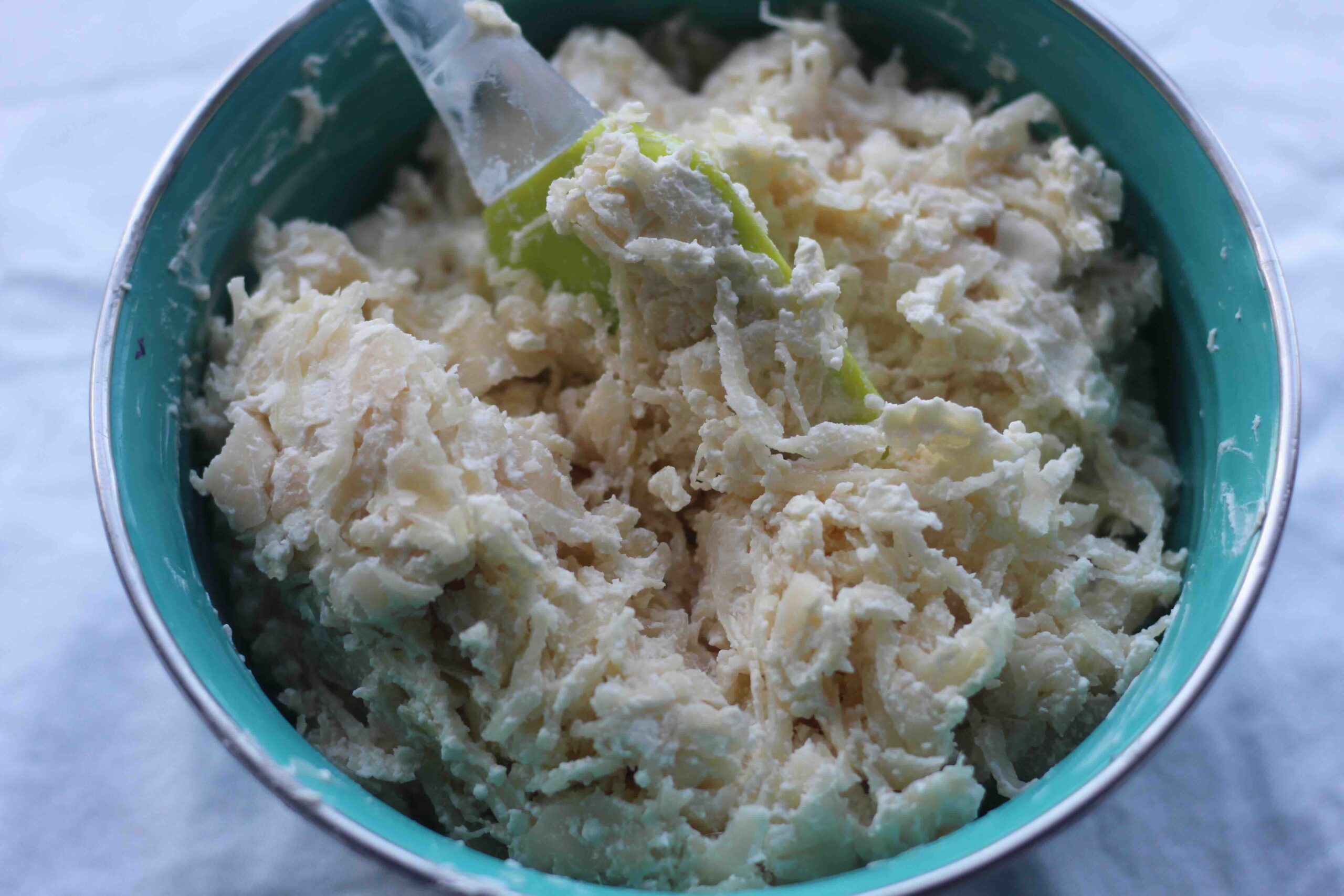 Toss the 2 shredded cheeses together.
