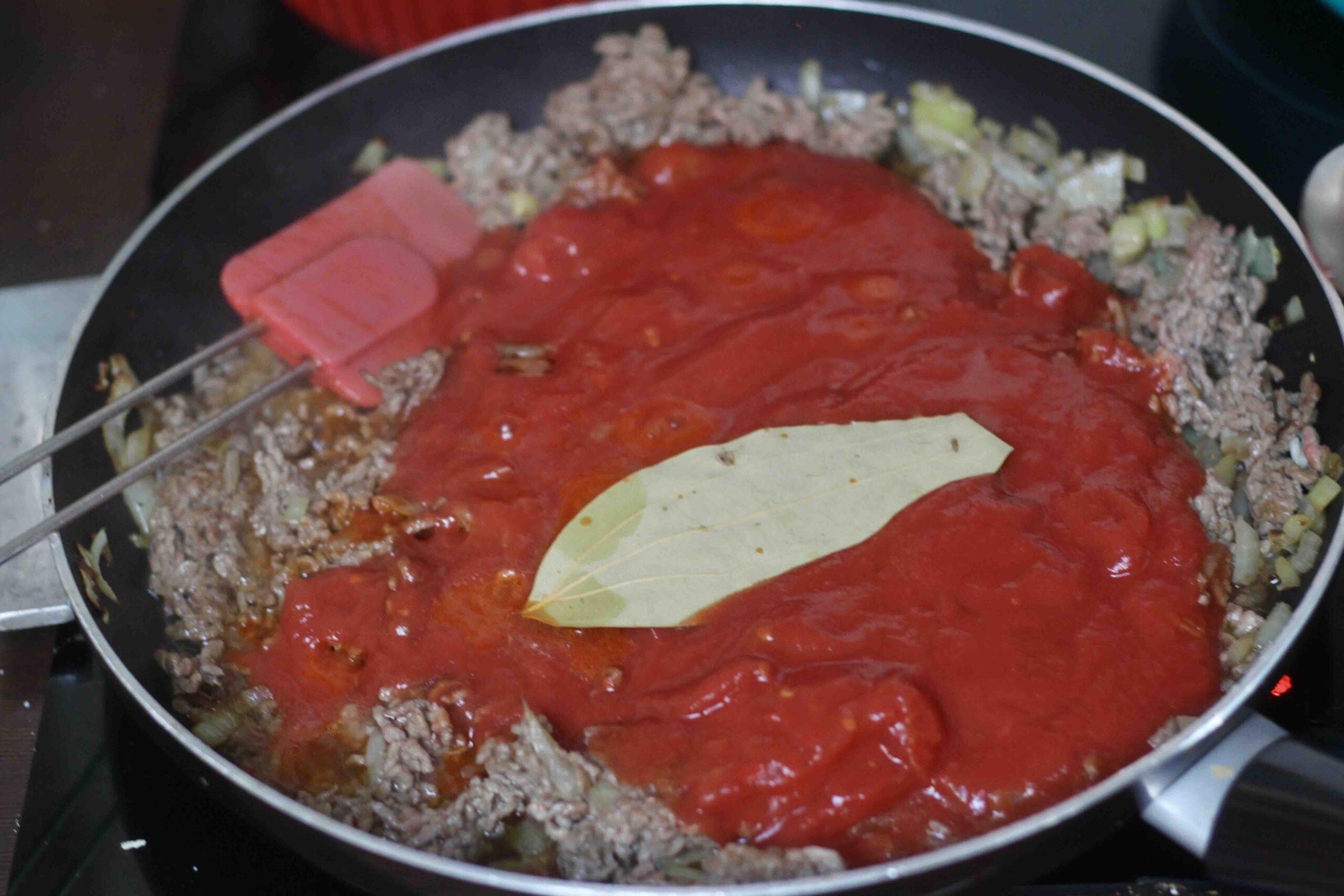 Remove the bay leaf from the sauce.